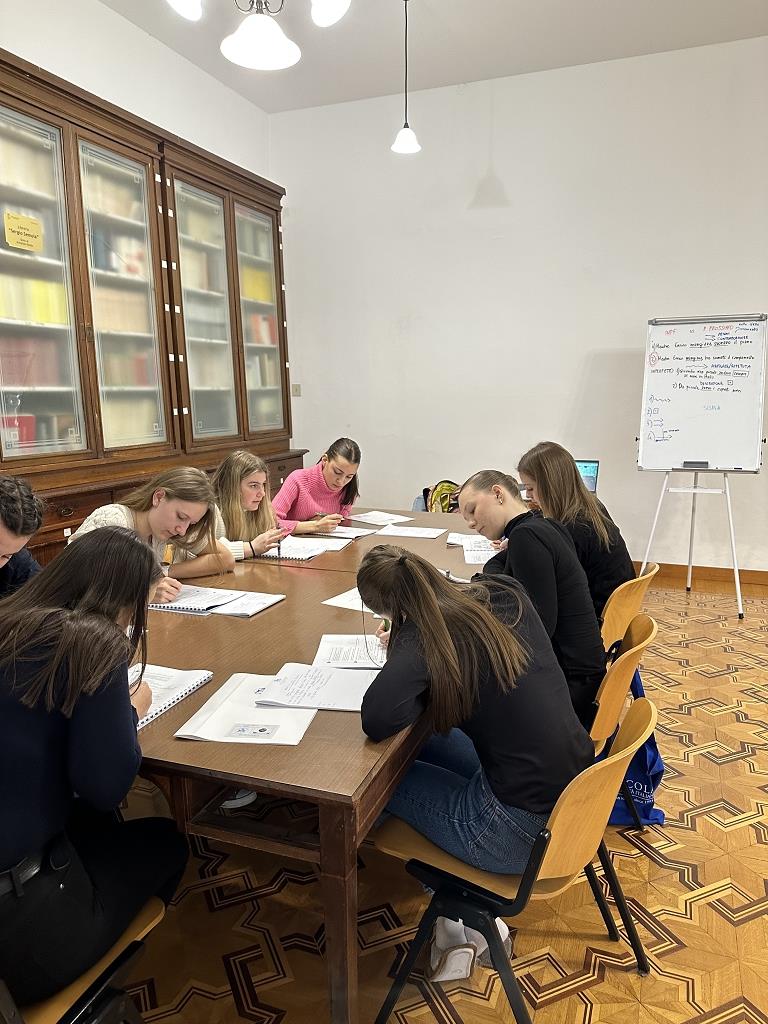 Jeden Vormittag von 9 bis 13 Uhr absolvierten wir vier Stunden eines durchstrukturierten Programmes, durch das uns zwei extrem nette „Italiane vere“ namens Virginia und Serena führten. Sie bescherten uns Grammatik-, Lese- und Hörübungen, wodurch unsere Sprachkenntnisse enorm verbessert wurden. Eines der Highlights war definitiv das Sprechen mit den Einheimischen, denn wir hatten von unseren Lehrerinnen die Aufgabe bekommen, Personen auf der Straße höflich anzusprechen, uns vorzustellen und dann auf Italienisch zu interviewen. Ein zweiter Auftrag lautete, mit unseren Handykameras Motive festzuhalten, die typisch für Italien seien: Eine Vespa, ein Student mit Lorbeerkranz bis hin zu „Gelateria“ und „Kaffeehaus“ waren unter den landestypischen Details.