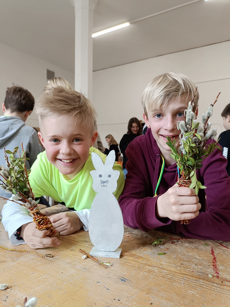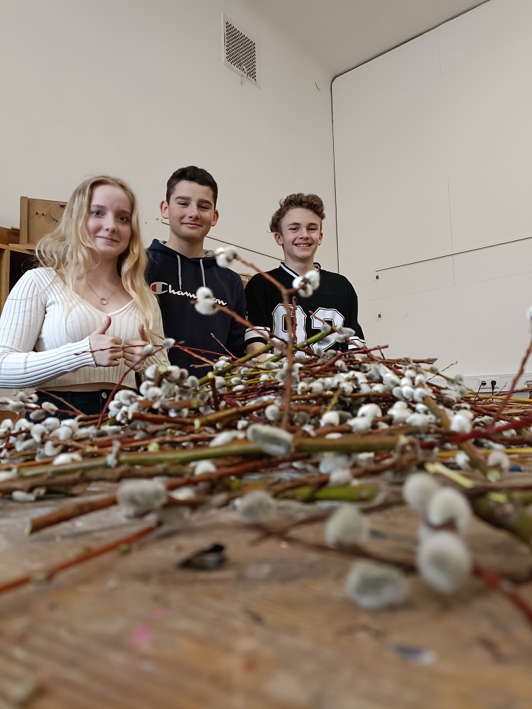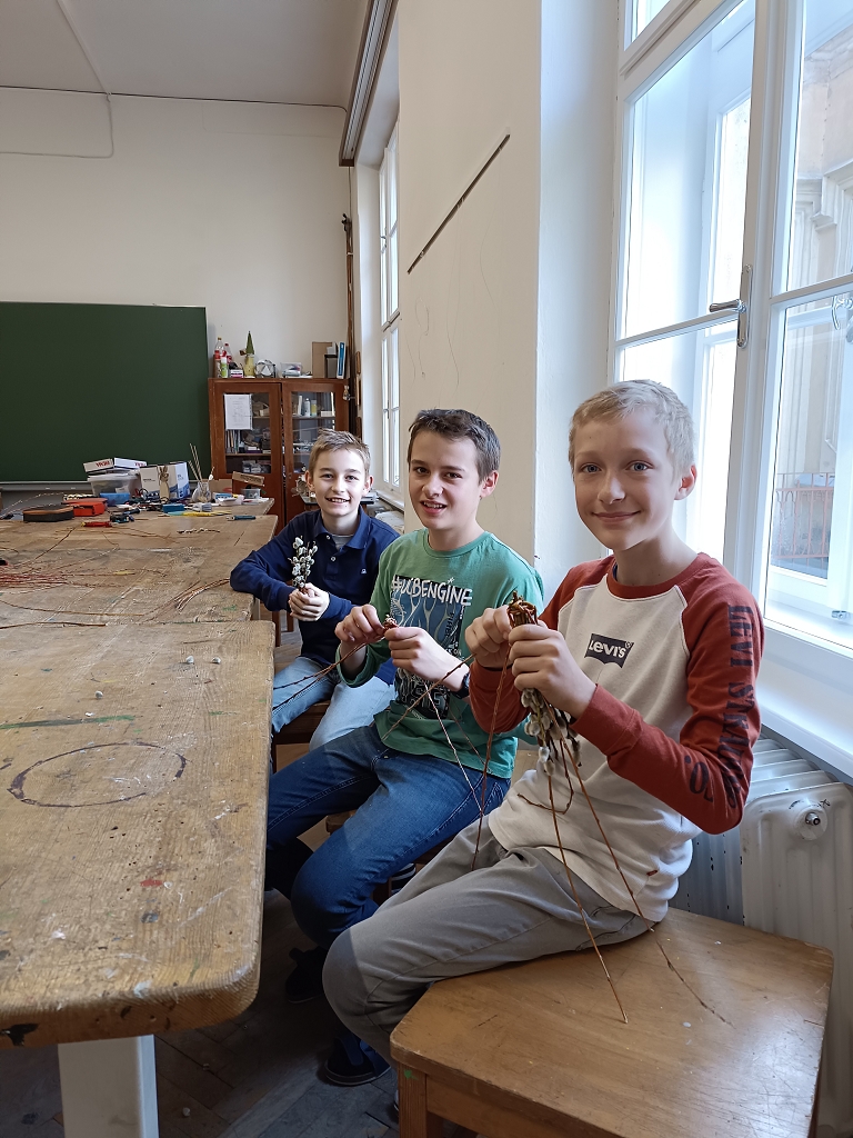 Es ist bereits eine liebgewonnene Tradition, dass im Werkunterricht Palmbesen in allen Altersstufen gefertigt werden.