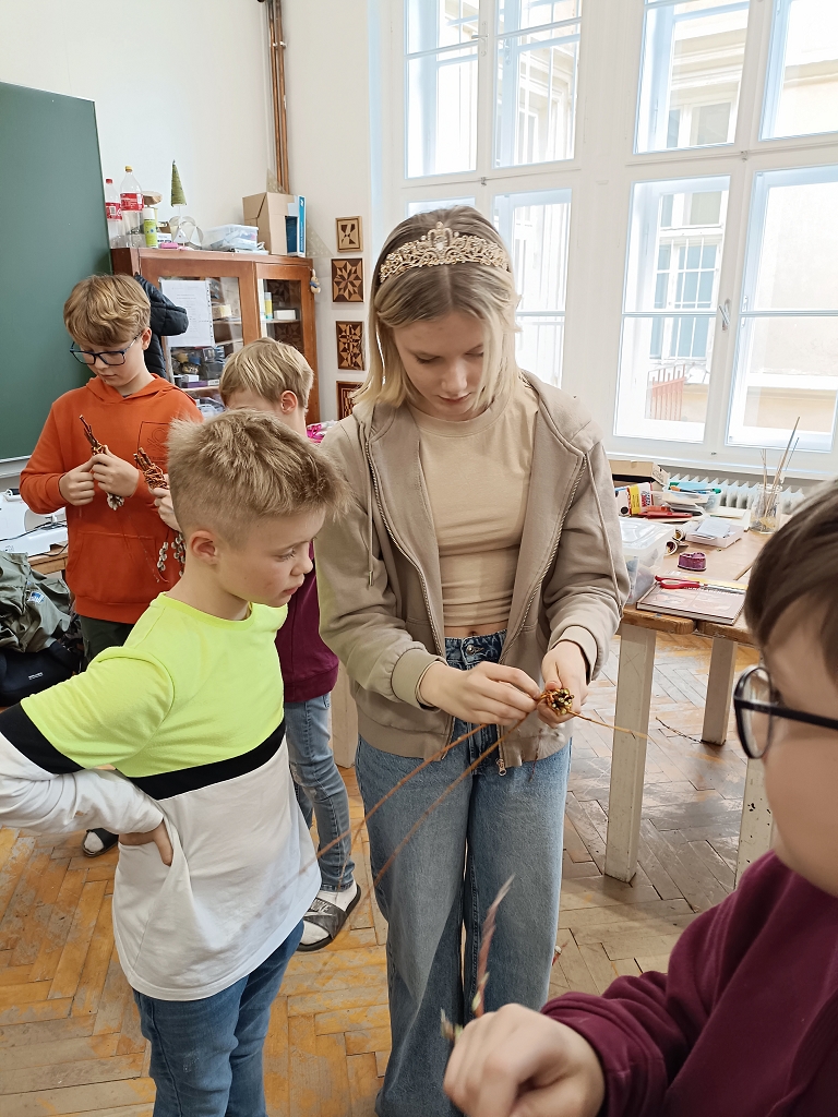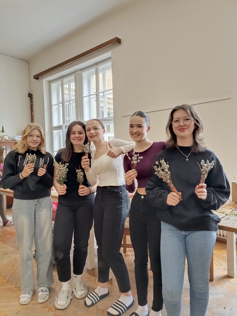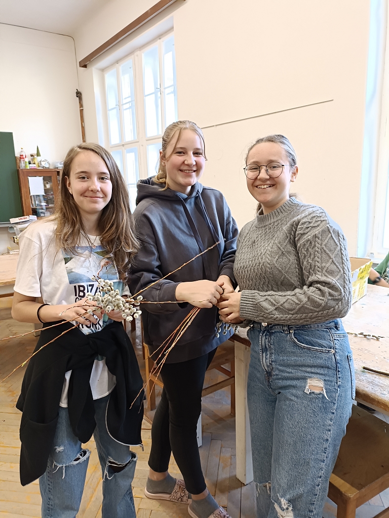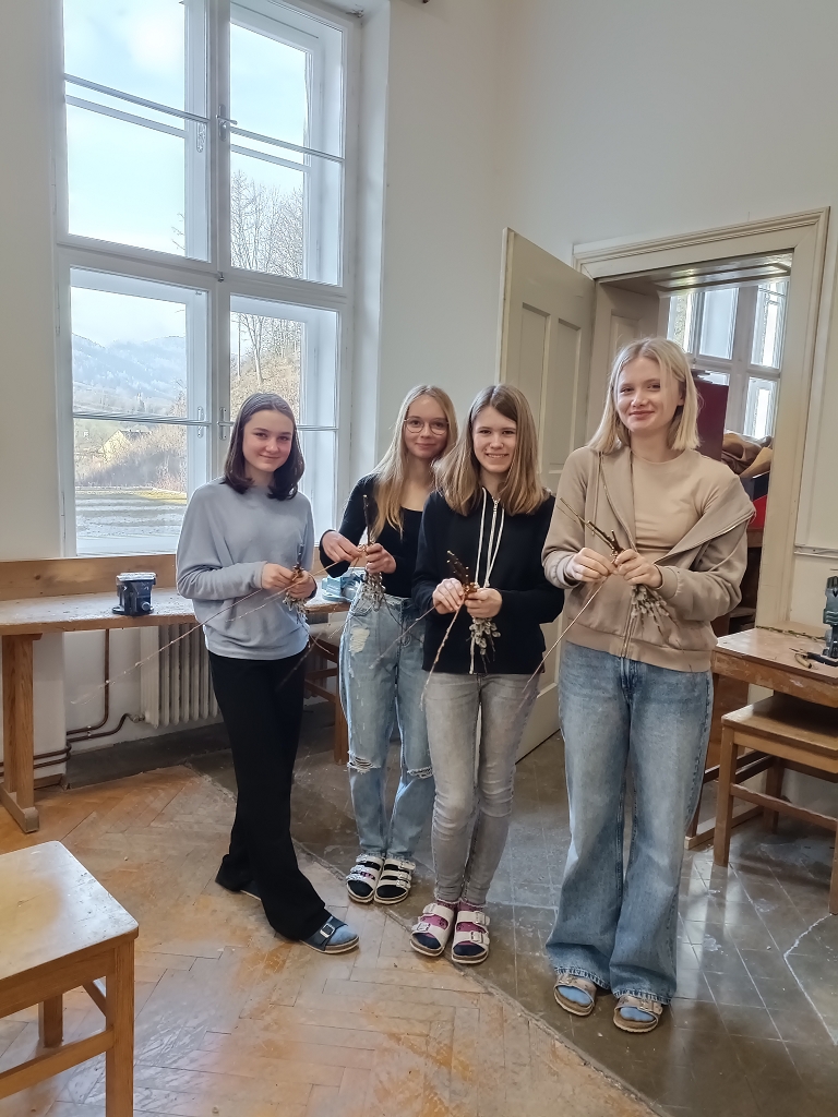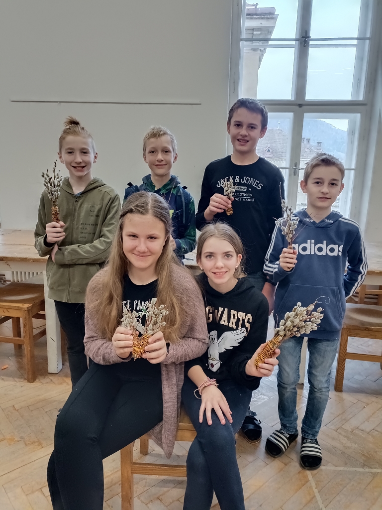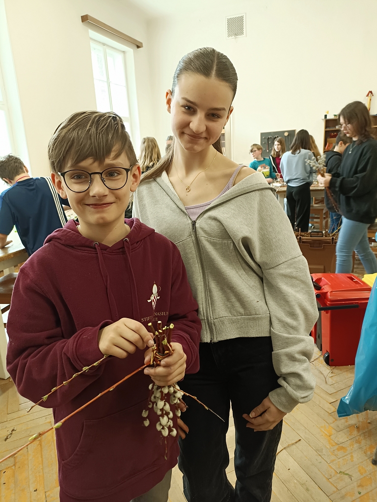 Dabei erlernen die SchülerInnen unter Anleitung die alte und oft leider vergessene Technik des Körbchenflechtens. Geschmückt werden die Palmbesen mit Segenbaum und Buxbaum. Durch dieses gemeinschaftliche Arbeiten wird diese Tradition auch von SchülerIn zu SchülerIn weitergegeben. Ein herzliches Dankeschön an das Stift, das die Materialien zur Verfügung gestellt hat.