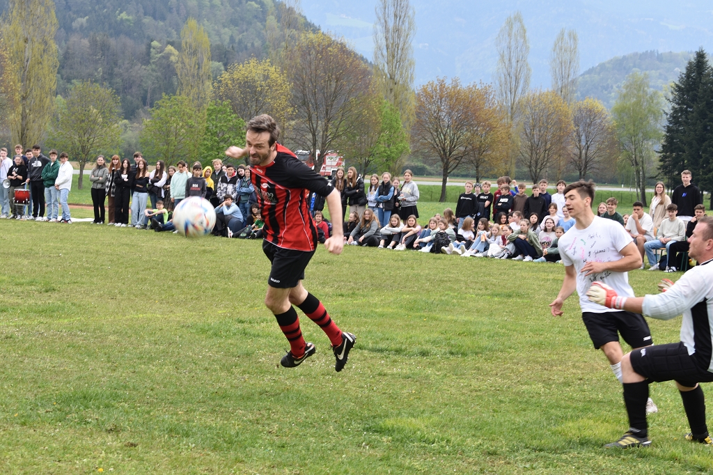 Vor allem die Schüler zeigten sich topmotiviert und liefen anfangs zu Höchstform auf. Nach 20 Minuten führten sie bereits mit 3:0 und nützten die Fehler in der Hintermannschaft der Professoren eiskalt aus. So schienen sie bereits wie der sichere Sieger. Doch knapp vor der Halbzeit konnten die Professoren doch noch mit sehenswerten Kombinationen und zwei erzielten Toren den Rückstand verkürzen. Diese aufkommende Spannung sollte bis in die Schlussminuten erhalten bleiben. Erst in der letzten Phase der 2. Halbzeit konnte unser Administrator und Stellvertreter der Schulleiterin, Mag. Andreas Oberbucher, von seinen Mitspielern perfekt in Szene gesetzt werden und das Spiel mit vier Toren zugunsten der Professoren entscheiden. So endete das für die Zuseher/innen hochspannende Match mit 7:5 für die Professoren. Mit diesem Erfolg gehen die Professoren in die wohlverdiente einjährige Matchpause. Den Maturanten für die Zukunft alles Gute und vielleicht sieht man sich wieder einmal am Fußballplatz.