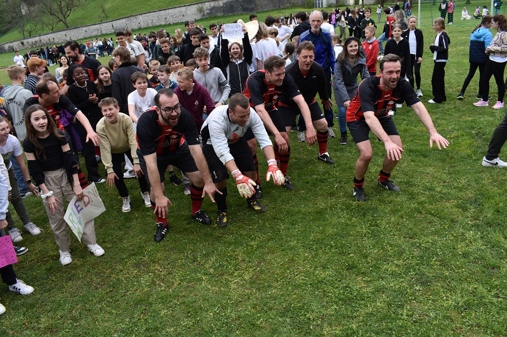 An jenem Tag, an dem die Maturanten und Maturantinnen sich ihr Abschlusszeugnis der 8. Klasse abholen durften, hatten sie noch eine besonders herausfordernde Prüfung zu bestehen: das Fußballmatch gegen die Professoren.