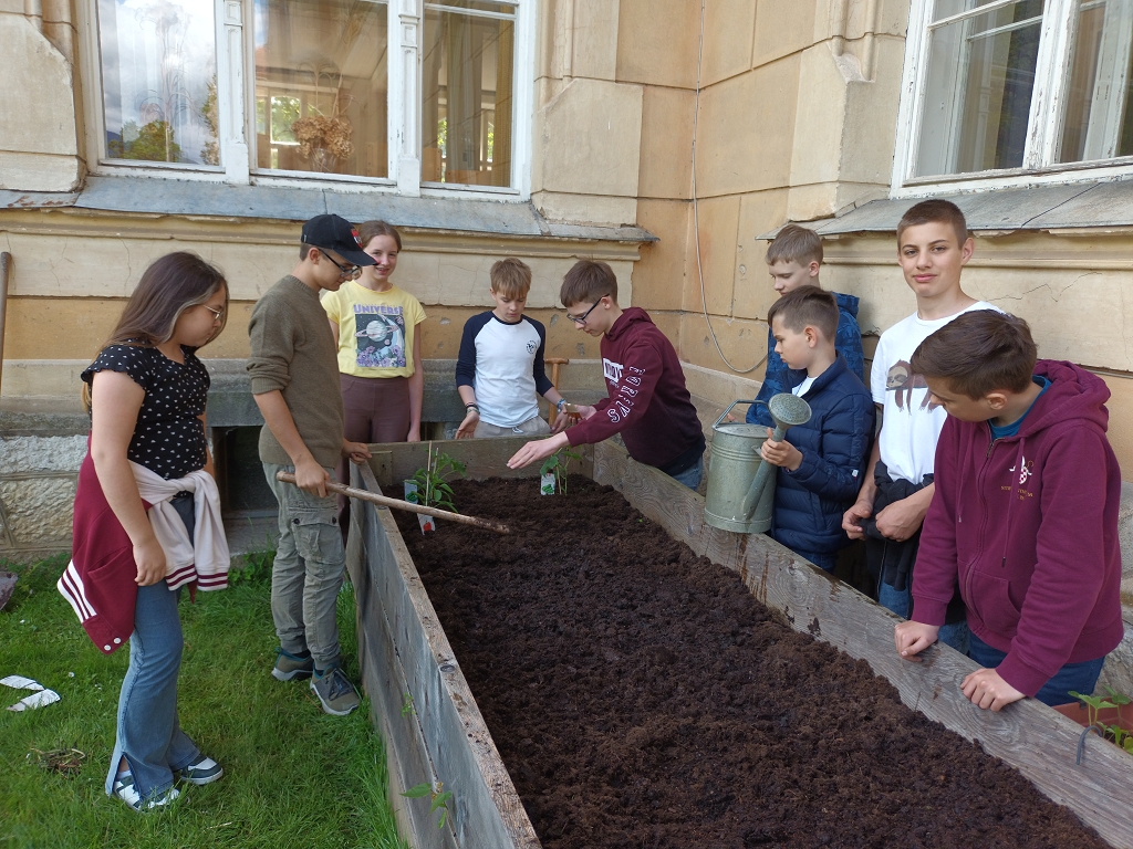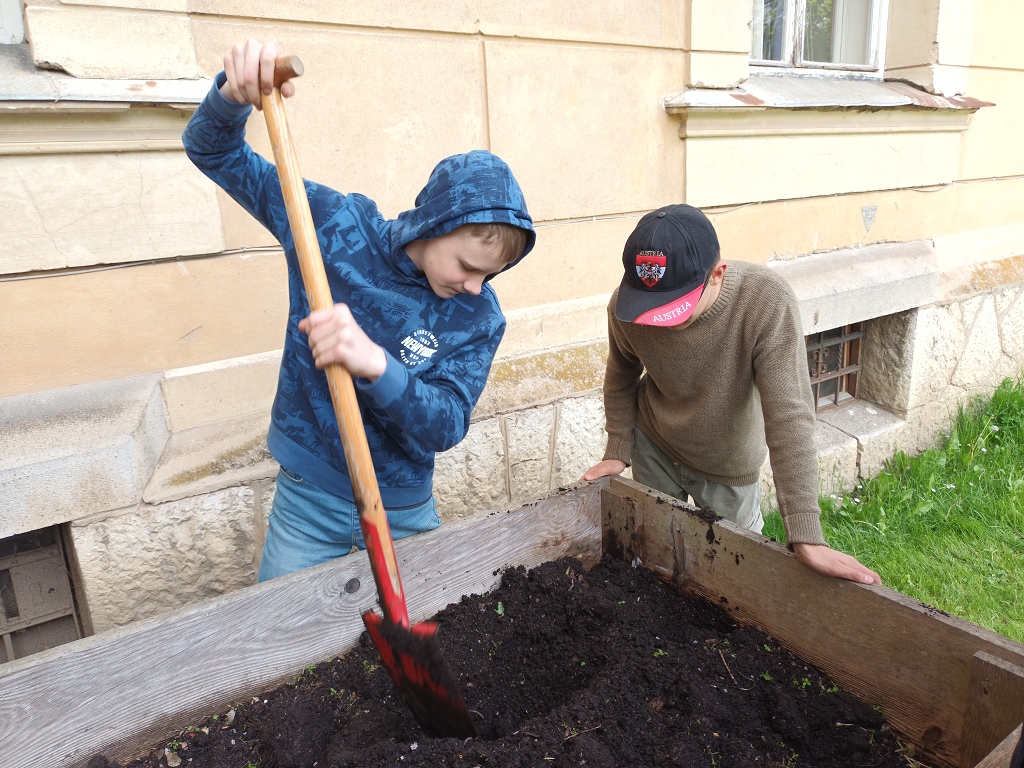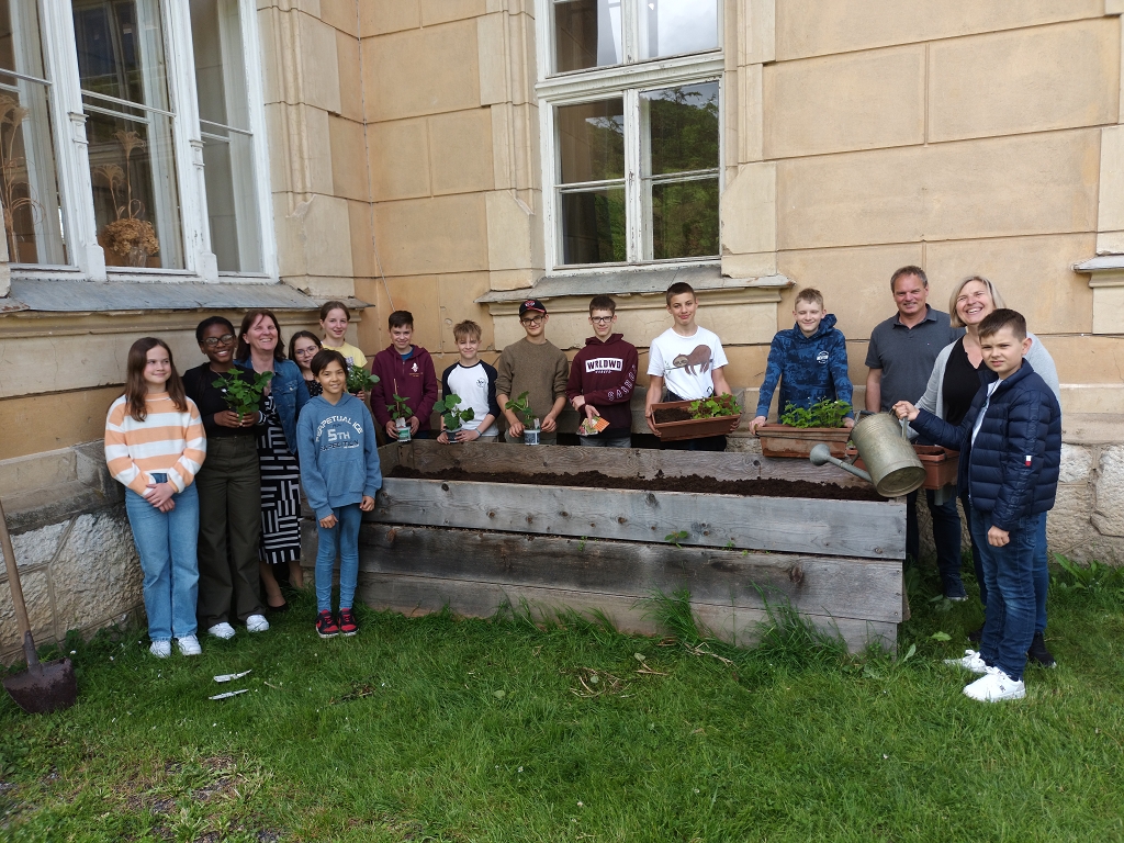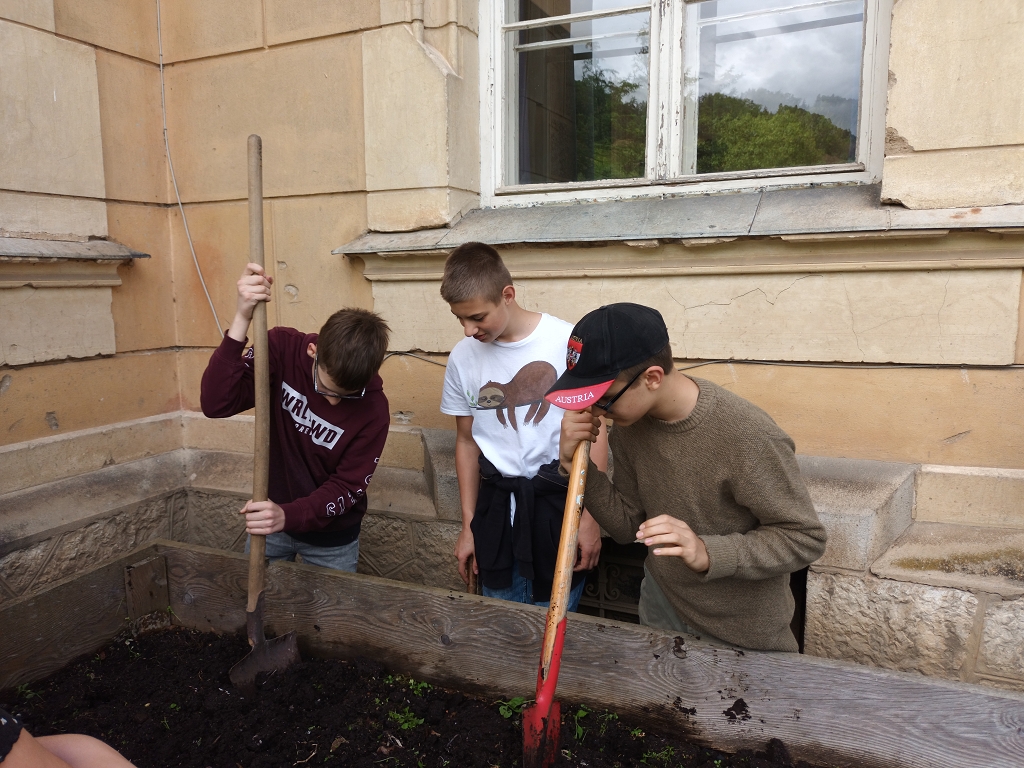 Dieses wurde unter der regen Beteiligung der Schülerinnen und Schüler der 1a, 2a, 3a und 3b Klasse der Tagesheimschule neugestaltet. Mit viel Engagement und Einsatz hat man Unkraut gejätet, umgestochen, die neue Hochbeeterde eingearbeitet und Erdbeeren, Radieschen, Paprika, Snackgurken, Karotten und Kresse gepflanzt. Begeistert vom grünen Daumen der Schülerinnen und Schüler zeigte sich Direktorin Mag. Ines Leschirnig-Reichel. Nun heißt es abzuwarten und auf eine gute Ernte zu hoffen. Mehr Bio geht nicht!