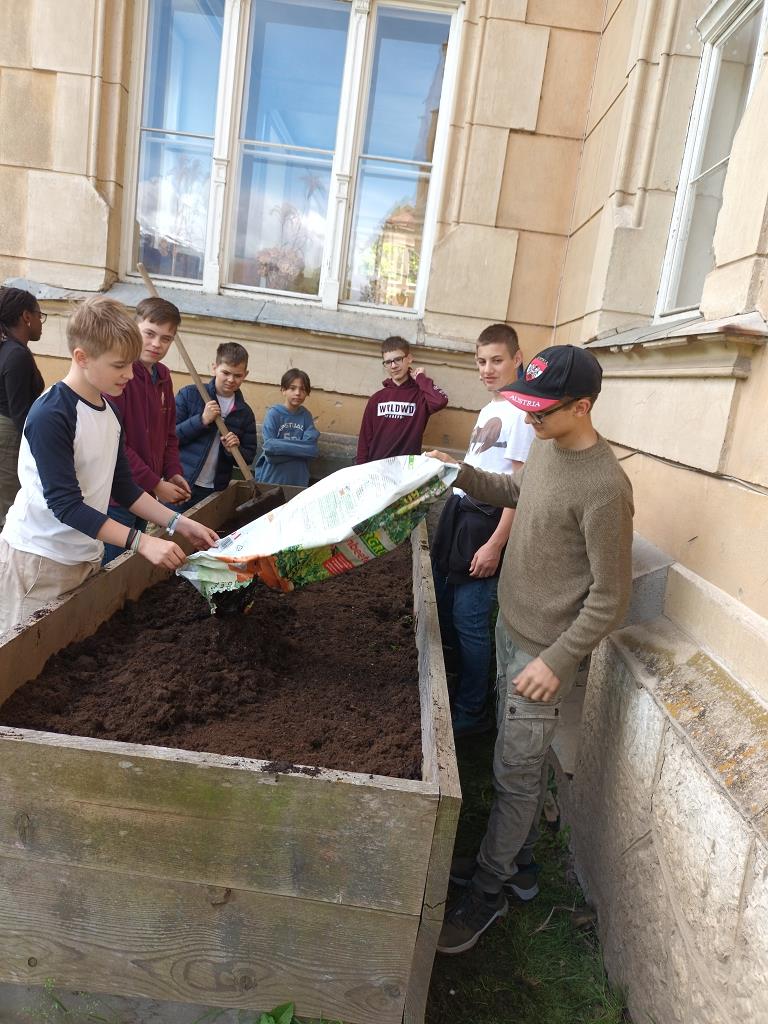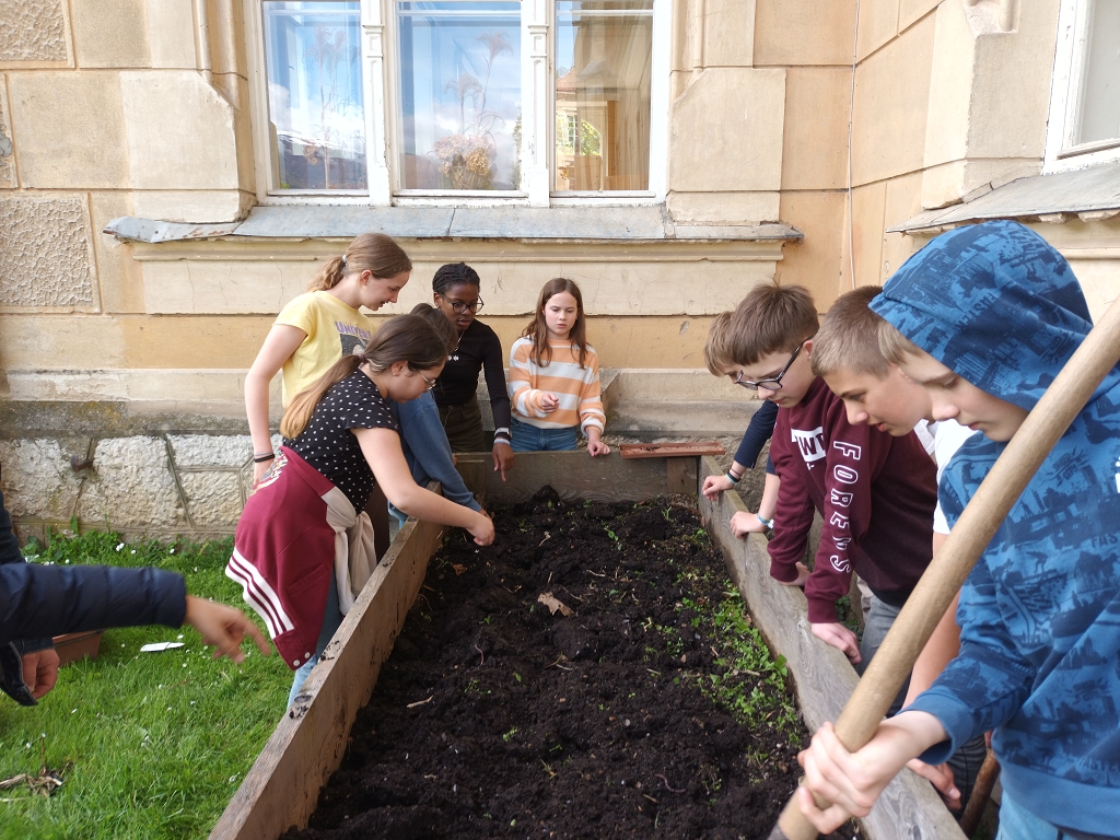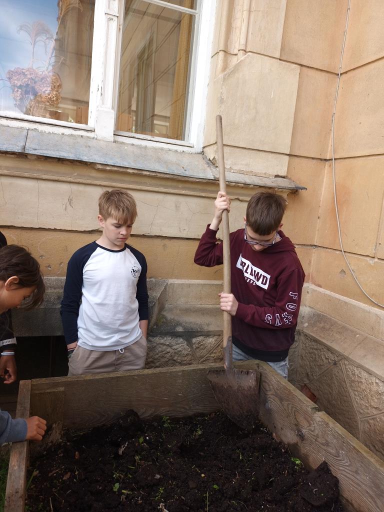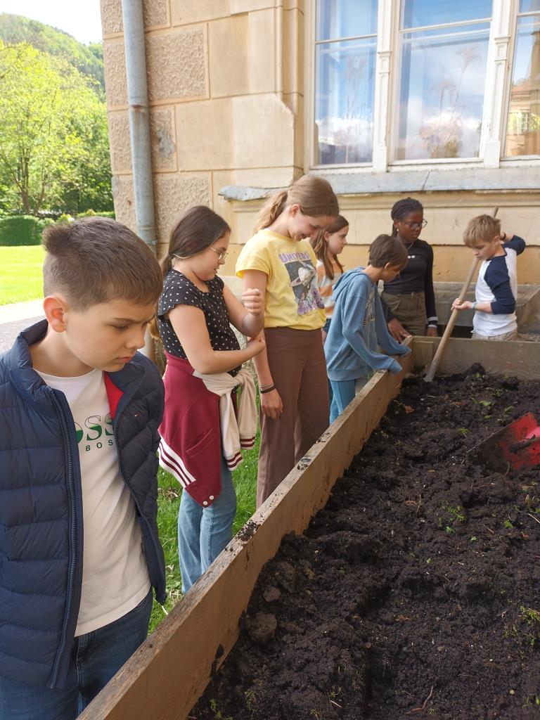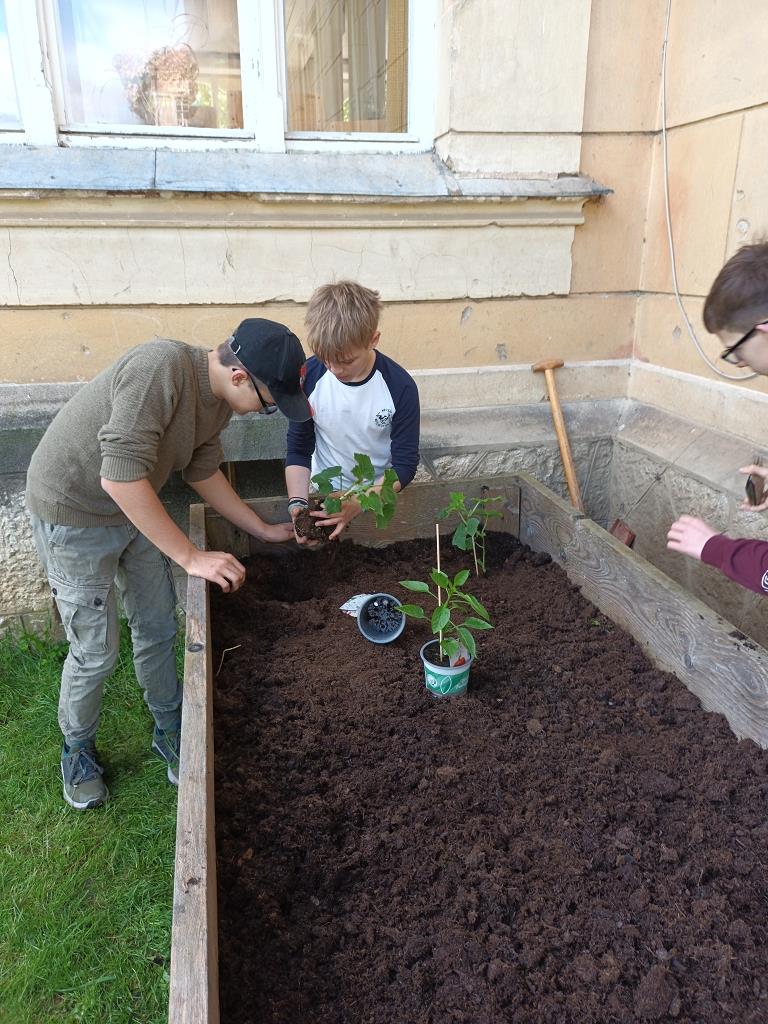 Dieses wurde unter der regen Beteiligung der Schülerinnen und Schüler der 1a, 2a, 3a und 3b Klasse der Tagesheimschule neugestaltet. Mit viel Engagement und Einsatz hat man Unkraut gejätet, umgestochen, die neue Hochbeeterde eingearbeitet und Erdbeeren, Radieschen, Paprika, Snackgurken, Karotten und Kresse gepflanzt. Begeistert vom grünen Daumen der Schülerinnen und Schüler zeigte sich Direktorin Mag. Ines Leschirnig-Reichel. Nun heißt es abzuwarten und auf eine gute Ernte zu hoffen. Mehr Bio geht nicht!
