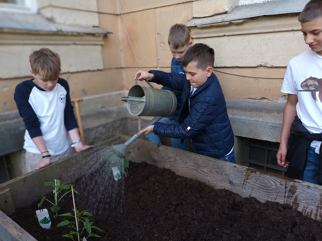 Auch die Nachmittagsbetreuung zeigt sich ganz im Zeichen des Ökolog-Schulprojektes. Und das nicht erst seit dem heurigen Schuljahr. Denn was ist nachhaltiger und ökologischer als ein Hochbeet direkt vor der Schultür?