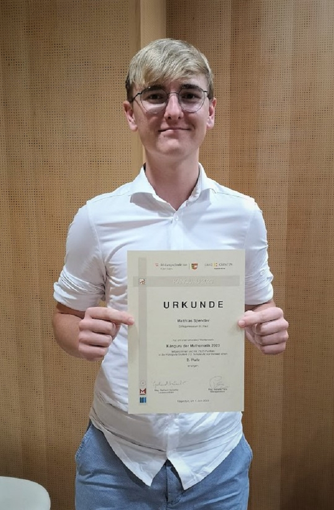 Das Stiftsgymnasium St. Paul war dabei durch die beiden erfolgreichen Schüler Marco Vogt (1b), der in seiner Schulstufe den 5. Platz erreichte, und Matthias Spendier (8c), der in seiner Schulstufe den hervorragenden 2. Platz erzielen konnte, vertreten.