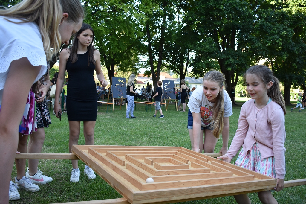 Zu den programmtechnischen Highlights zählten die Tanzvorführungen und verschiedene Sport- und Geschicklichkeitsspiele, bei welchen Kinder und Eltern ihr Können unter Beweis stellen konnten. Großer Beliebtheit erfreuten sich auch das Kinderschminken und die Kunstausstellung im Speisesaal. Darüber hinaus gab es eine Tombola, ein Schätzspiel und weitere Gewinnspiele, bei welchen man spannende Preise gewinnen konnte. Musikalisch umrahmt wurde die Veranstaltung von unserer Schul- sowie der Lehrerband. Beide Musikgruppen schafften es gekonnt, die Besucher:innen zu unterhalten und auch zum Mitsingen und -tanzen zu animieren. So ging dieser Abend, wie auch das abgelaufene Schuljahr, kurzweilig und erfolgreich zu Ende. Ein abschließender Dank ergeht an alle Gäste, Sponsoren und Helfer, die zum Gelingen des Schulfestes beigetragen haben.