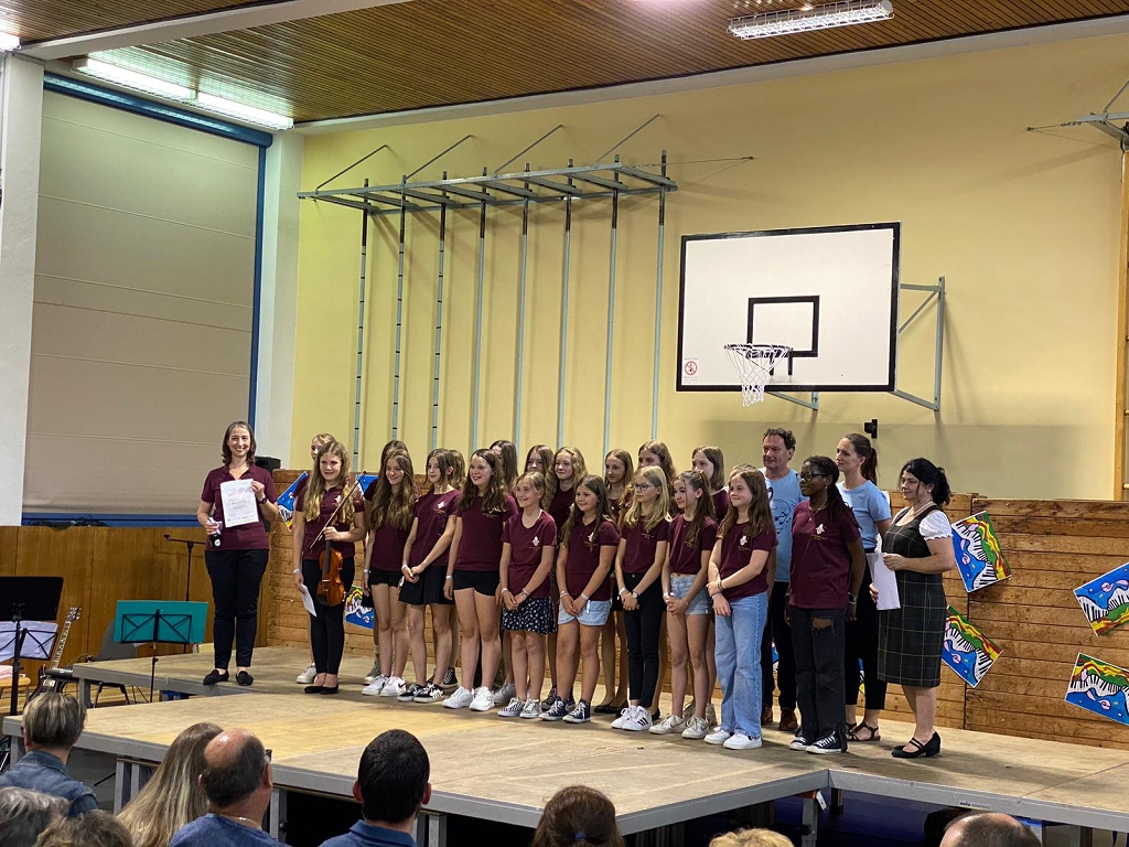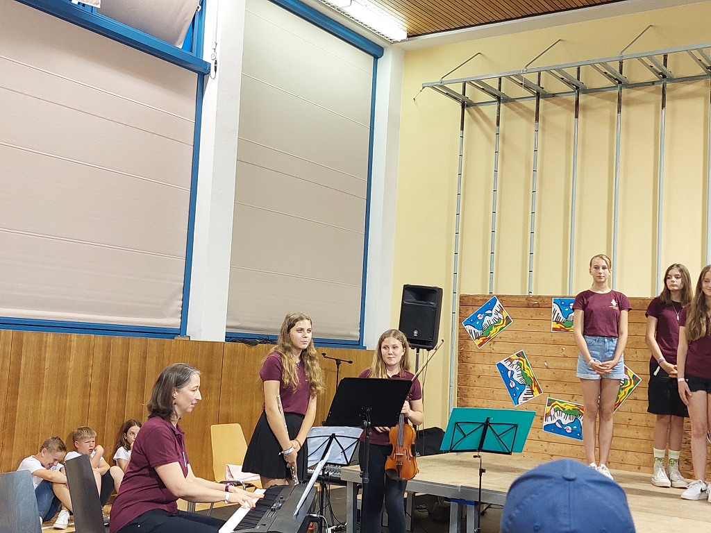 Unter der Leitung von Frau Prof. Almut Wakonig-Dalton sangen die Schülerinnen das von Professor Thomas Zdravja eigens für den Chor komponierte Stück „Traman“. Es folgte „How far I’ll go“ aus Disney’s Vaiana, ehe der Auftritt mit dem allbekannten Stück „California Dreaming“ von „The Mamas and the Papas“, in der Bridge begleitet von Miriam Unterluggauer (Querflöte) und Judith Unterluggauer (Geige), seinen Abschluss fand.