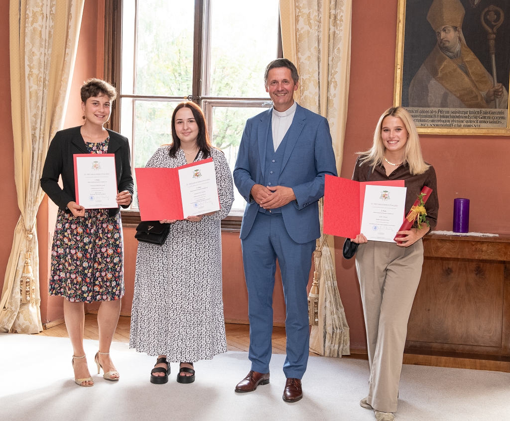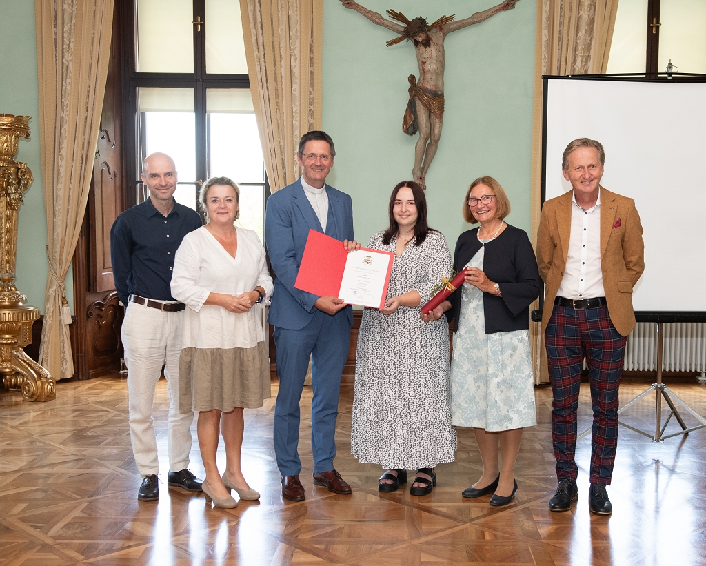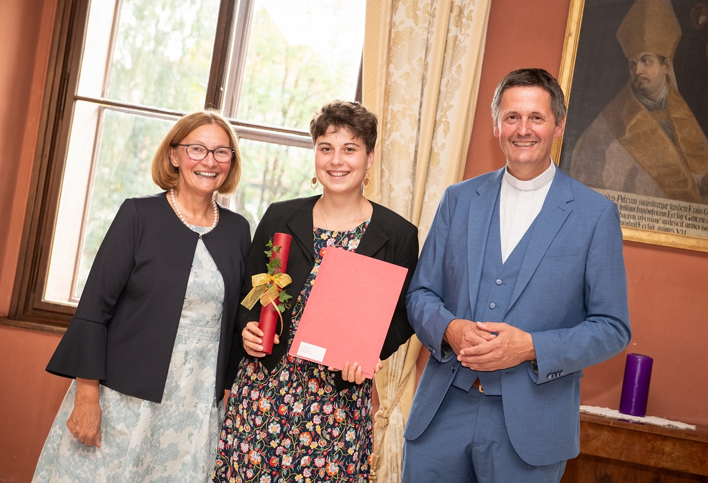 Im Rahmen einer sehr würdigen Feier im bischöflichen Ordinariat unter Beisein des Schulamtsdirektors FI Kan. Dr. Peter Allmaier, MBA, wurden die Urkunden und Preise überreicht. Betreut und eingereicht wurden die beiden Arbeiten des Stiftsgymnasiums St. Paul von Prof. Mag.a Andrea Pötsch MA.
