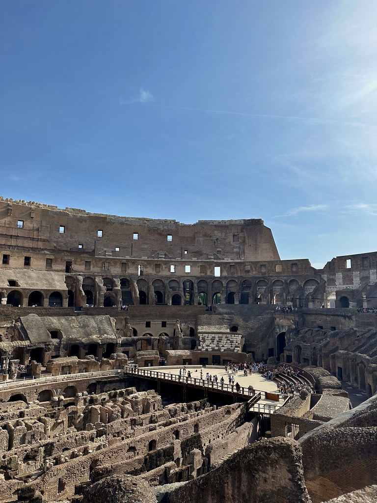 Am Montag versammelten wir uns nach dem Frühstück und gingen zusammen zum Petersplatz. Dort machten wir uns die Zeit in der Warteschlange zu Nutze und begannen schon mit den Referaten der Schüler. Endlich in der Kirche angekommen haben wir zusammen mit den Reiseführern den atemberaubenden Dom besichtigt. Inkludiert waren die Pietà, der Hochaltar sowie die verschiedenen Statuen und viele weitere Kunstwerke. Nach der Führung hatten die Schüler die Chance, selbst auf die Kuppel des Petersdoms zu gehen, was die meisten auch taten. Dort oben hatte man eine einzigartige und wunderschöne 360° - Aussicht auf Rom. Nachdem wir uns zu Mittag gestärkt hatten, machten wir uns auf den Weg zu den Kapitolinischen Museen, wo wir unter anderem die Mark Aurel-Reiterstatue, den Jupitertempel und eine beachtliche Skulpturensammlung aus dem antiken Rom begutachten durften. Von dort aus gingen wir anschließend noch zum Palazzo Valentini. Ausgestattet mit Kopfhörern sind wir in einer Multimedia-Führung durch Lichtspiele und Kurzfilme in das Leben der antiken Römer eingetaucht und konnten die Überreste dieser römischen Stadtvilla bewundern. Diese Führung war eine großartige Abwechslung und etwas ganz Besonderes, das wir alle noch nie vorher erlebt hatten.