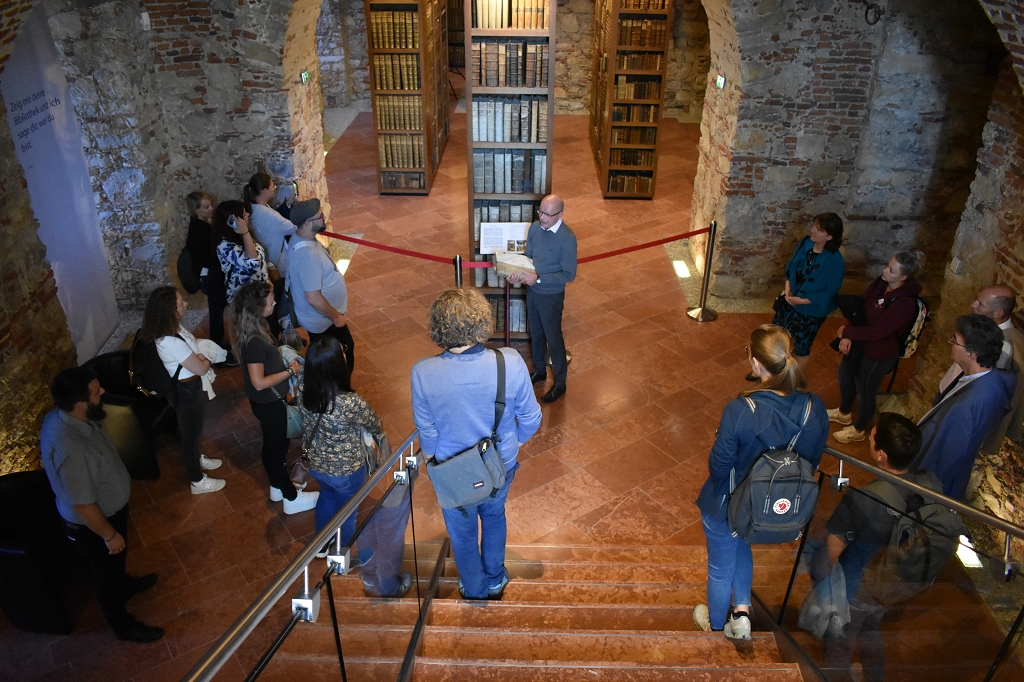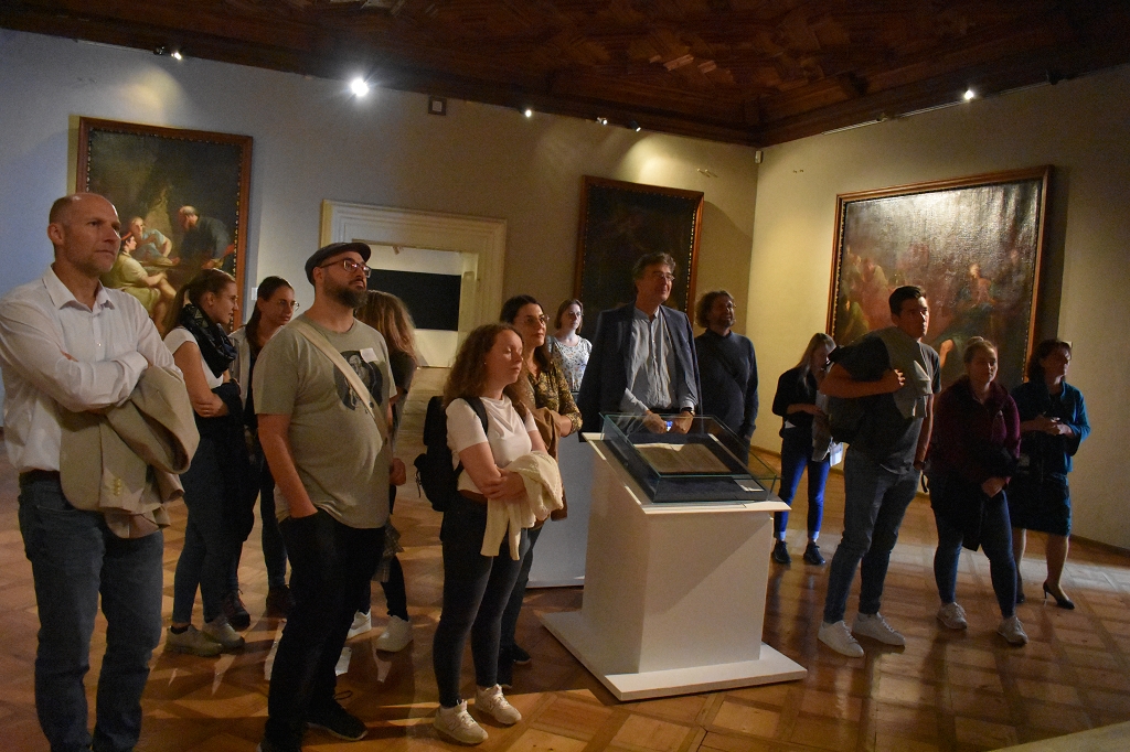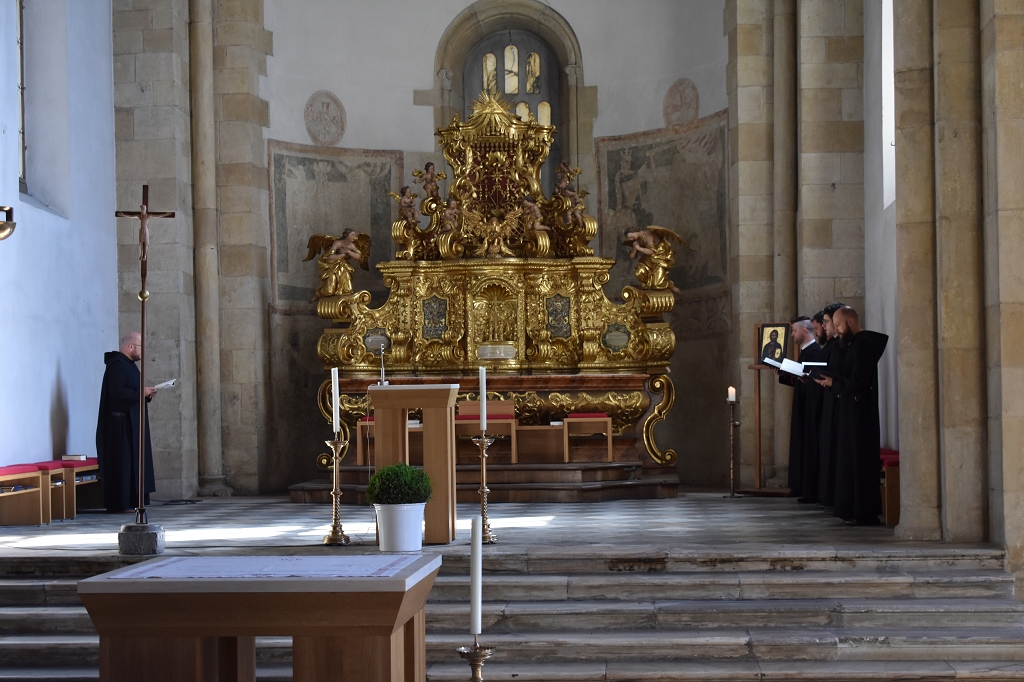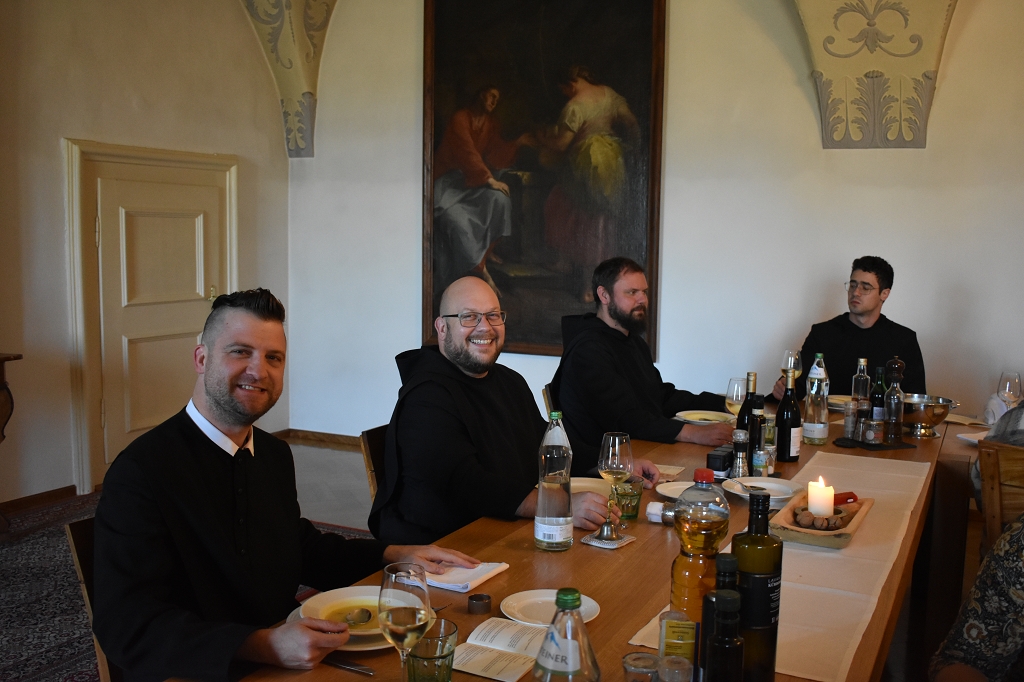 Der Freitag begann für alle Anwesenden mit dem Morgenlob, den Fr. Professor Andrea Pötsch gestaltete, und schritt mit einem Impuls zur Spiritualität und Führung, geleitet von HR. Mag. Wilhelm Pichler und Mag. Angela Pichler vom Bundesgymnasium Seckau, voran. Eine Führung durch die derzeitige Ausstellung geleitet von Professor Dr. Rudof Freisitzer, bei der auch die dazugestoßenen Direktorinnen und Direktoren dabei waren, folgte. Auf Einladung des Prior-Administrators wurde nach dem Mittagsgebet im Sommerrefektorium getafelt. Damit neben all der Arbeit und Informationsfülle jedoch das Gebet nicht zu kurz kam, schloss der Tag mit einer kurzen Fußwallfahrt auf den Josefsberg, wo Prior-Administrator Mag. P. Marian Kollmann einen Wortgottesdienst für alle Teilnehmenden leitete, ehe er diese spirituell gestärkt zu Abendessen und gemeinsamen Ausklang entließ.