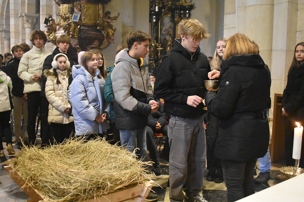 In gewohnter Weise wurde die Adventszeit im Stiftsgymnasium St. Paul mit dem gemeinsamen vorweihnachtlichen Gottesdienst ausbegleitet. Für die Feier danken wir unserem Priester, Administrator Professor Marian Kollmann. Am Ende des Gottesdienstes richtete Frau Direktor Ines Leschirnig-Reichel noch Grußworte an Kollegium und Schülerinnen und Schüler, in denen sie ermutigende Worte fand, den Blick auf das Schöne und Gute in einer Welt zu richten und mit Zuversicht in die Zukunft zu gehen.