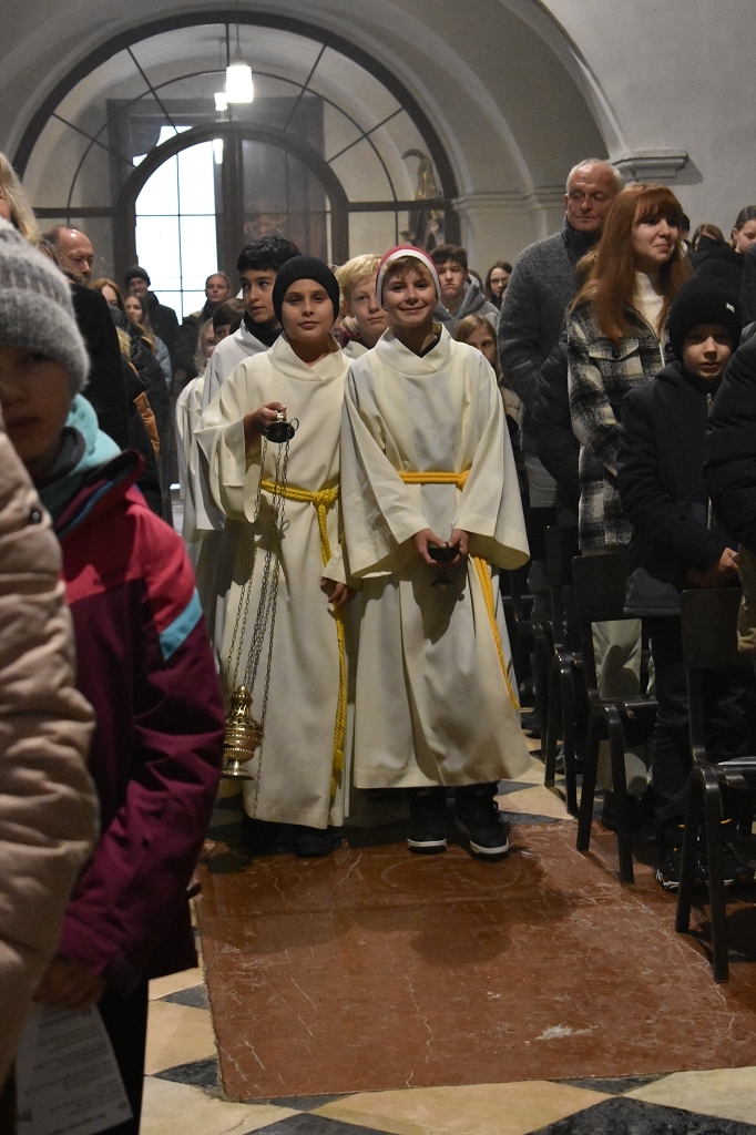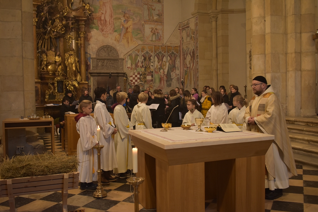 Musikalisch begleitet wurde der Gottesdienst vom Bläserensemble unter der Leitung von Professor Thomas Zdravja sowie dem Schulchor unter der Leitung von Frau Professor Almut Wakonig-Dalton, der diesmal vom Stiftschor unter der Leitung von Edward Mauritius Münch unterstützt wurde, mit dem der Schulchor bereits die Adventkranzsegnung der Pfarre St. Paul gestalten durfte.