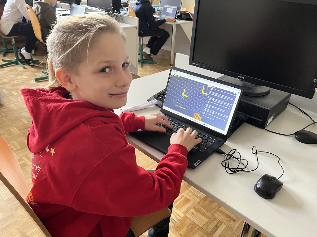 Wie die Bilder zeigen, bereitet es den Schülerinnen und Schülern sehr viel Spaß, selbst einen „Code“ zu schreiben. Erfolge werden dabei auch sogleich gefeiert.