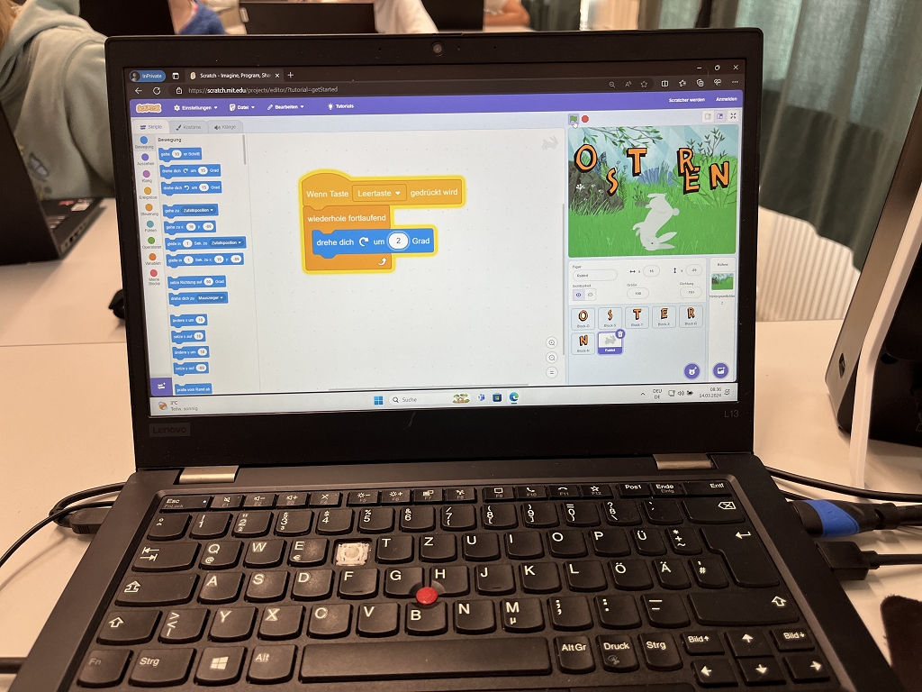 Als aktuelles Thema, das die Mädchen in diesen Klassen begeistert, wurde das Thema Ostern gewählt. Doch anstatt nur Ostereier zu bemalen oder Osterhasen zu basteln, tauchten die Schülerinnen in die Welt der Technik ein. Sie lernten, wie man Figuren animiert und was die Fachbegriffe Programmierung, Coding, Algorithmus und Schleife damit zu tun haben. Dabei nutzten die Mädchen eine blockbasierte Programmiersprache, die speziell für ihre Altersgruppe entwickelt wurde.