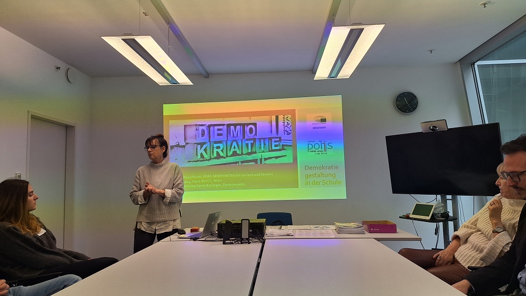 Der lehrreiche Tag setzte sich am Nachmittag im Erlebnis Europa mit einem Rollenspiel über den EU-Gesetzwerdungsprozess für die Seniors fort. Die Juniors trafen sich parallel dazu mit den Europaabgeordneten Thomas Waitz und Hannes Heide zur Diskussion, in welcher ein zentrales Thema auch Frauenrechte waren, da das Seminar am internationalen Frauentag stattfand.