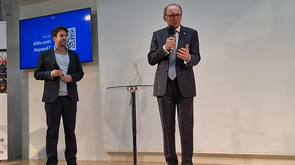 Erster Programmpunkt im Haus der EU war eine Diskussionsrunde mit Othmar Karas. Im Zuge dieser äußerte sich der erste Vizepräsident des Europaparlaments unter anderem zur Rolle der EU in Fragen des Klimawandels, der aktuellen Konflikte im Gazastreifen und der Ukraine sowie der Stellung des neutralen Österreichs in einer europäischen Verteidigungspolitik.
