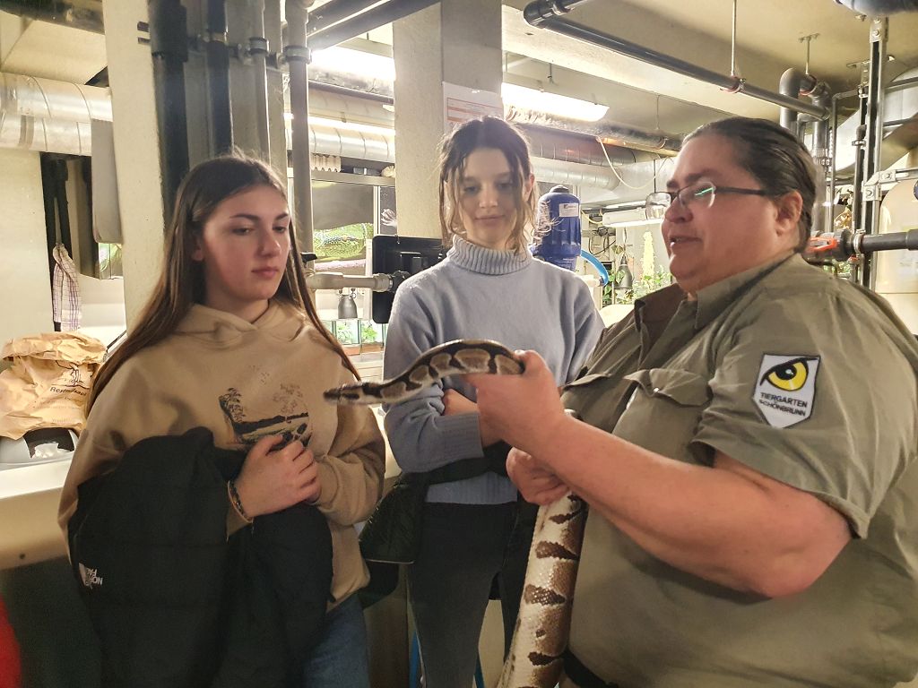 Nach diesem ersten Einblick in die faszinierende Unterwasserwelt erkundeten wir den Backstagebereich, wo uns die Funktionsweise verschiedener Filteranlagen zur Wasserreinigung erläutert wurde. Wir hatten die Gelegenheit, zahlreiche Reptilien, Fische und sogar den Nachwuchs einiger Meeresbewohner zu bestaunen. Zum Abschluss durften wir sogar eine Pythonschlange berühren. Anschließend hatten wir noch etwas Zeit den Zoo zu erkunden. Schlussendlich führte uns unser Weg zur Gloriette, von der aus wir einen fantastischen Blick auf das Schloss Schönbrunn genossen. Den Abend ließen wir gemeinsam in einer Pizzeria ausklingen, zu der auch einige „Alt-St.Pauler“ kamen.