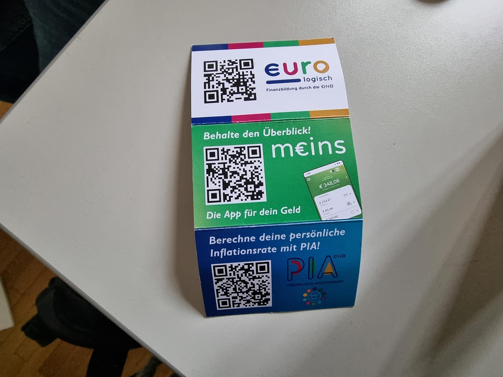 Im ersten Workshop ,,Das Geld ist m€ins“ lernten wir über die Nationalbank. Die Nationalbank hat folgende Kernaufgaben: Geld drucken, Preisstabilität, Finanzstabilität und Finanzbildung (dazu gehören auch die Schulworkshops).