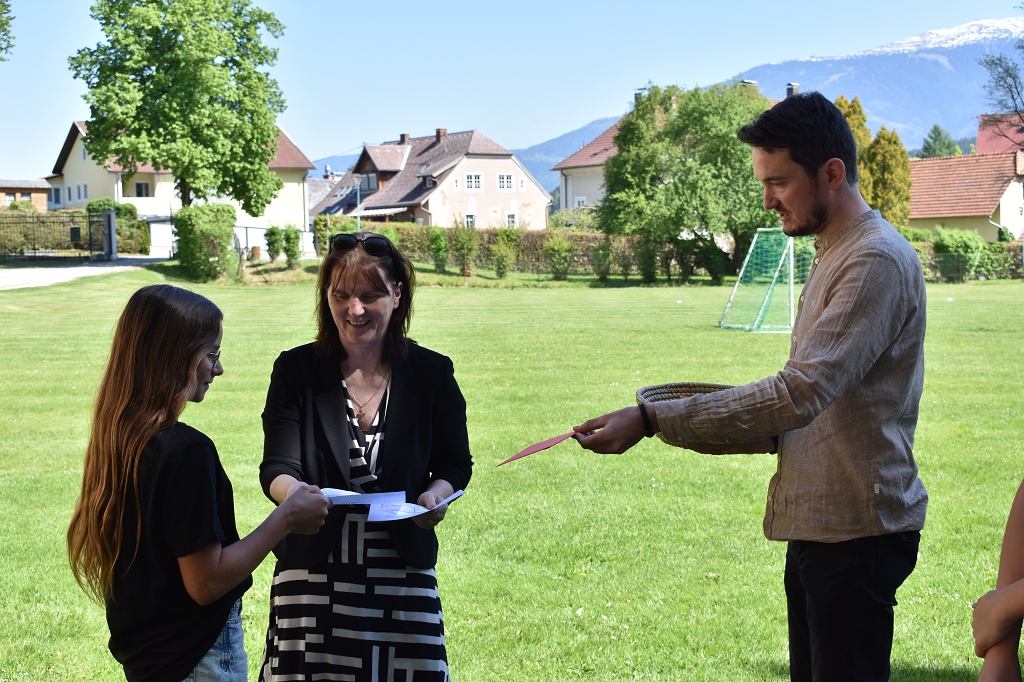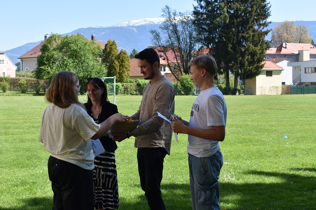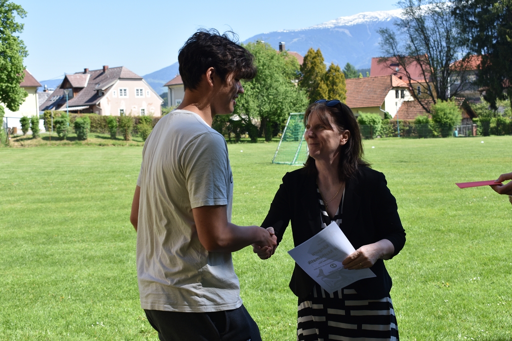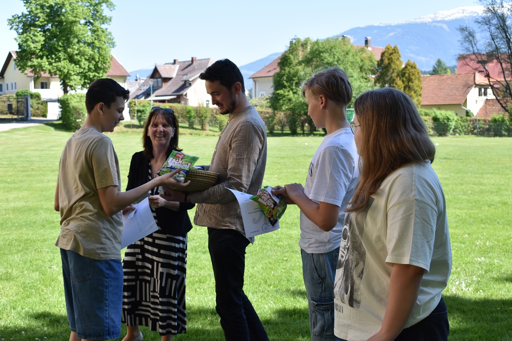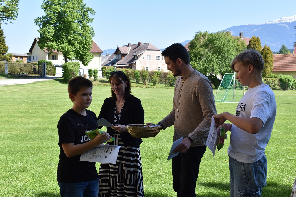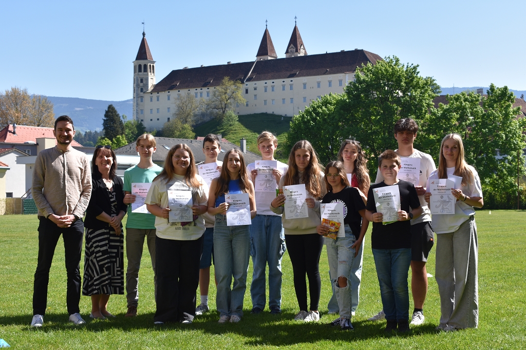 Gemeinsam mit der Schulleiterin, Prof. Mag. Ines Leschirnig-Reichel, überreichte der Kustos für Mathematik, Prof. Mag. Florian Herzog, jeweils den Top 3 der Kategorien Benjamin (1. und 2. Klasse), Kadett (3. und 4. Klasse), Junior (5. und 6. Klasse) und Student (7. und 8. Klasse) eine Urkunde sowie – je nach Platzierung – Buch-, Restaurant- oder Buffet-Gutscheine, die dankenswerterweise vom Elternverein gesponsert wurden.