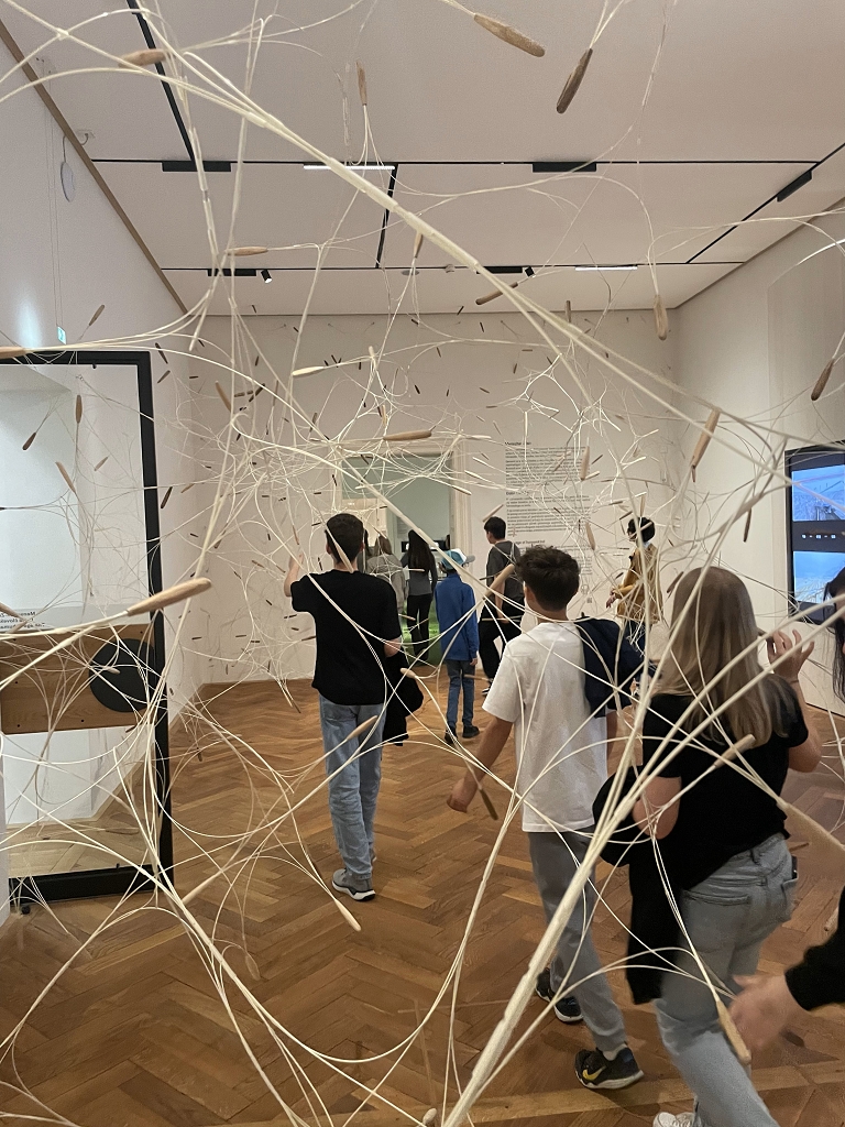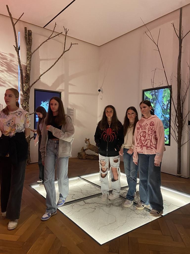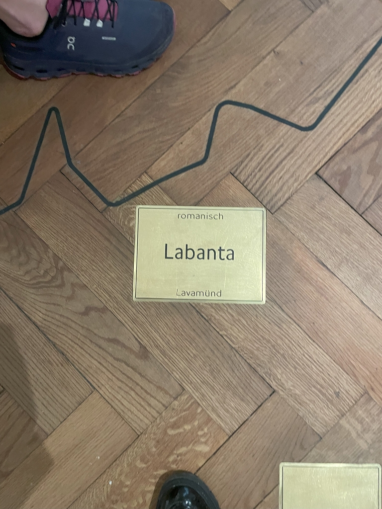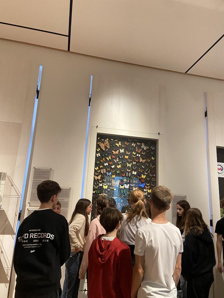 In Klagenfurt angekommen, ließ die Sonne leider auch auf sich warten. Nichtsdestotrotz ging es bewaffnet mit Regenschirmen nach der Mittagspause in den City Arkaden weiter zum neueröffneten kärnten.museum. Im Rahmen einer umfassenden Führung trafen die Schüler*innen unter anderem auf den „Lindwurmschädel“, das Großglockner-Relief sowie das faszinierende Dionysos-Mosaik aus Virunum.