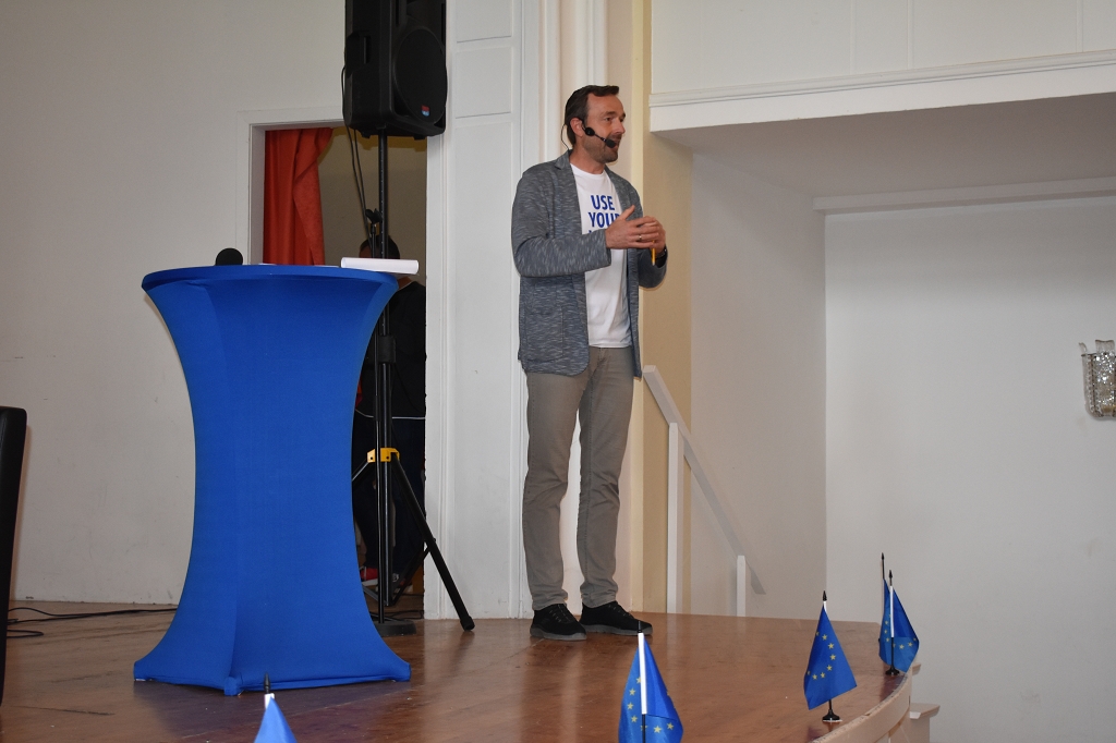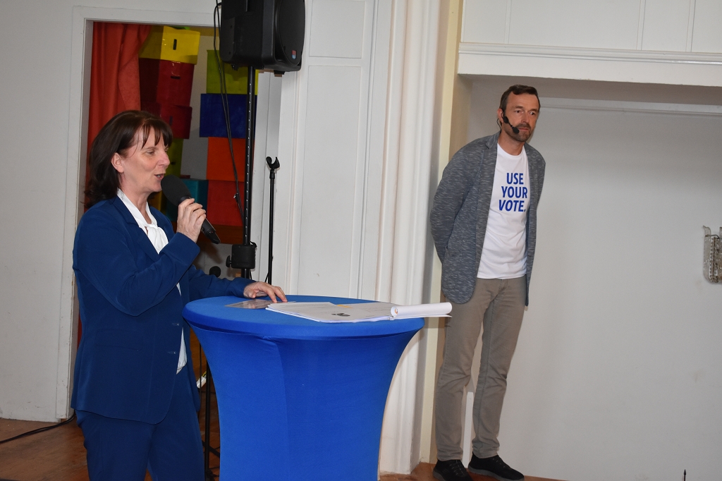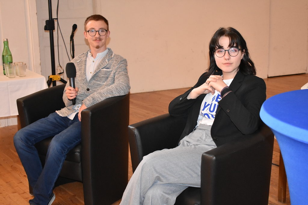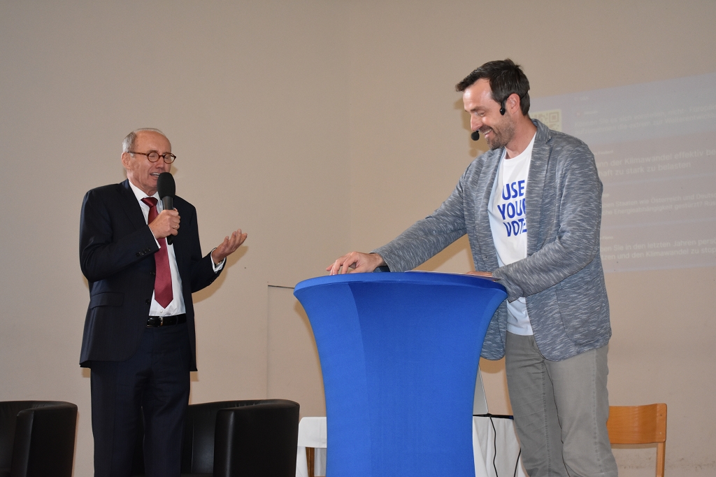 Als Auftakt zur Veranstaltung informierten die Junior-Botschafter unserer Schule, Johanna Grubelnig (7c) und Domenik Hochegger (6a), über Projekte der EU-Botschafterschulen, an welchen das Stiftsgymnasium St. Paul im Laufe des Jahres teilgenommen hat.