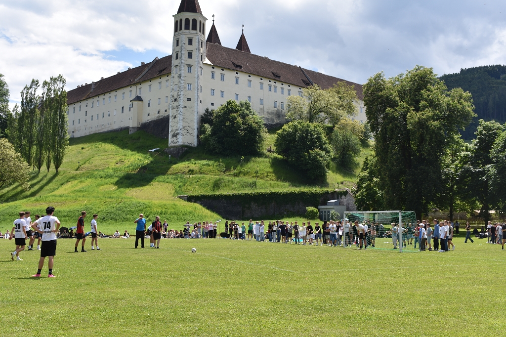 Alle Schüler:innen und Lehrkräfte des Stiftsgymnasiums waren vollzählig vertreten, um einem der beiden Teams die Daumen zu drücken. Die Stimmung war ausgelassen, denn die Zuseher wurden bereits beim Vorspiel (Finalspiel der 4. Klassen) bestens unterhalten. Dieses Kräftemessen konnte die 4d im Elfmeterschießen gegen die 4a gewinnen. Alles war nun bereit für ein spannendes Match zwischen den Lehrern und den Maturanten.
