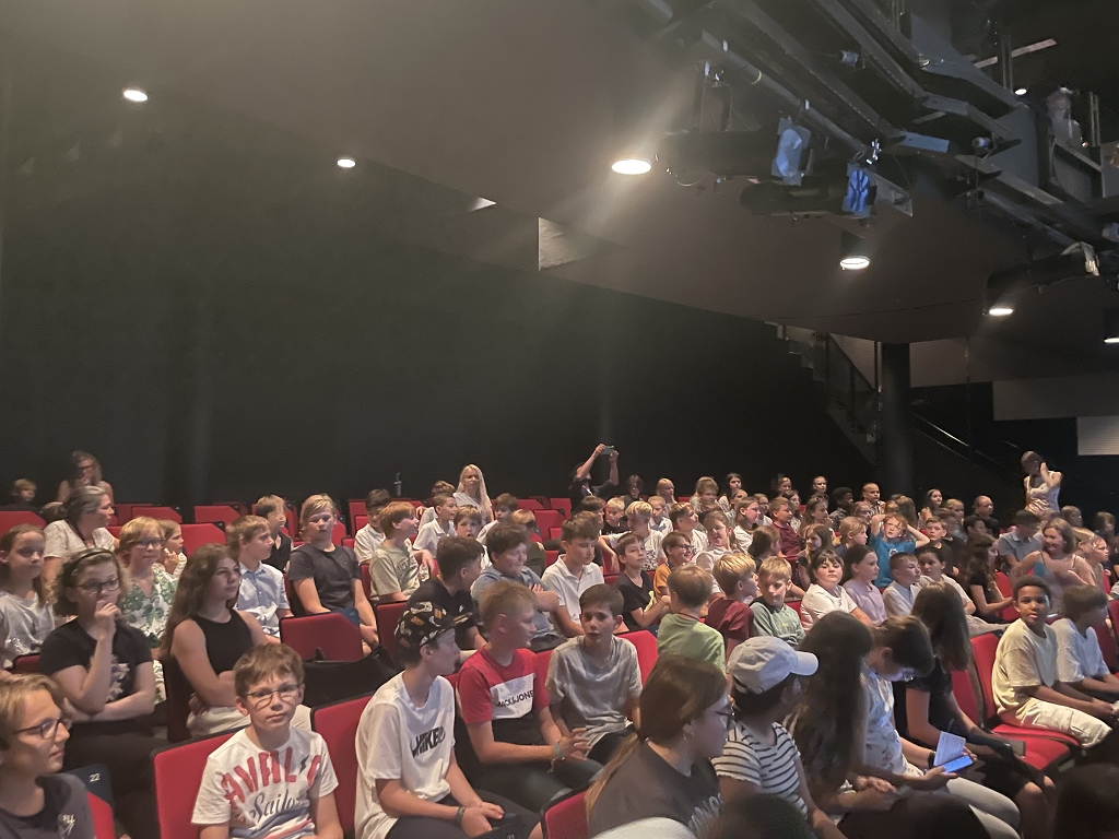 Nach intensiver Auseinandersetzung mit dem Stoff im Unterricht nutzten am 20. Juni die knapp 90 Schüler:innen der vier ersten Klassen die Gelegenheit, das Stück auf der Bühne im Next Liberty in Graz zu sehen: Der Waisenjunge Bosse reist eines Abends per Flaschengeist ins paradiesische „Land der Ferne“. Er ist froh, seinem tristen Zuhause zu entfliehen. Nur seine Freundin Benka wird er vermissen, der er hoffentlich einmal von seinen Abenteuern erzählen wird können: Von seinem Vater, dem König, der ihn mit „Mio, mein Mio!“ begrüßt, von der lieben Jum-Jum und dem fliegenden Pferd Miramis, von dem Ausflug über die Brücke aus Morgenlicht. Vom Hirtenjungen Nonno, von der Weberin, vom Trauervogel, der von den Kindern erzählt, die der böse Ritter Kato ins unheimliche „Land Außerhalb“ entführt hat… Und von Prinz Mios Entscheidung, trotz seiner Angst der zu werden, der er immer war.