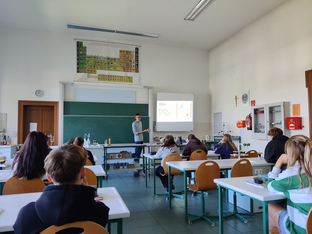 In einem kurzweiligen Vortrag gab Herr Lukas Kuchling einen Einblick in die faszinierende Welt der molekularen Vorgänge. Er erklärte anschaulich, wie Gen-Editing mit CRISPR-Cas9 funktioniert und diskutierte die Rolle von resistenten Superbakterien als Gefahr im 21. Jahrhundert.