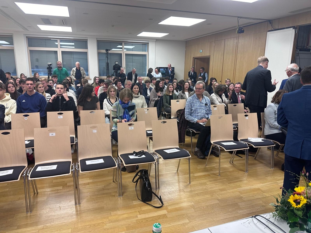 Anschließend hatten die Schülerinnen und Schüler in einer Diskussionsrunde die Möglichkeit, ihre Fragen direkt an die anwesenden Politiker zu stellen. Dieser Dialog zwischen Jugendlichen und Entscheidungsträgern bot auch Raum für einen Austausch über die Herausforderungen und Chancen der Zweisprachigkeit.