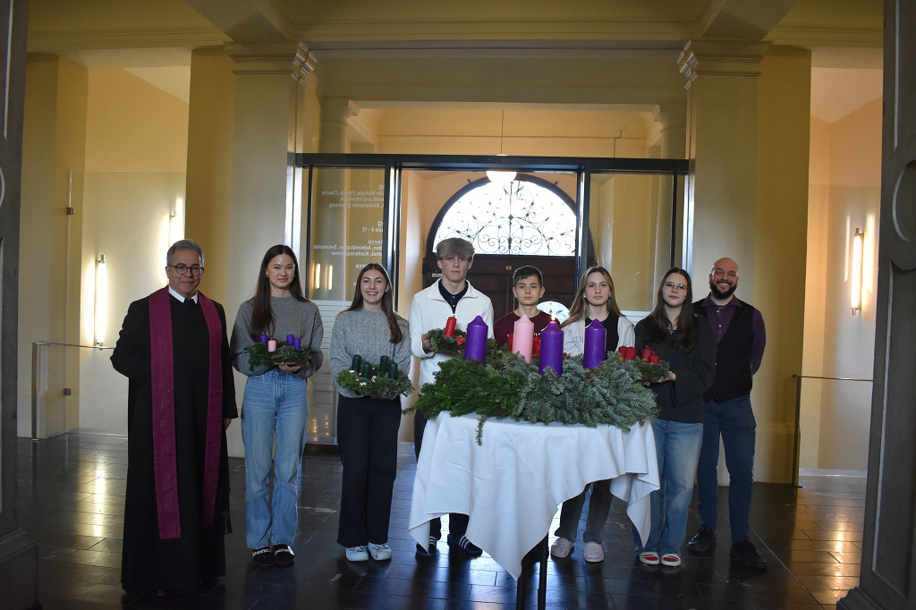 Gleich der Weihnacht, die alle Jahre wieder kehrt, so war auch an unserer Schule zu Beginn des Advents die Zeit, dass die traditionelle Adventkranzsegnungen der Unterstufen und Oberstufen im Festsaal des Konvikts und der Aula des Gymnasiums stattfanden. Hierfür danken wir unserem Schulseelsorger Dechant Kons. Rat P. Dr. Gerfried Sitar OSB der für uns diese Feiern leitete und die Adventkränze der Schule so wie der Klassen segnete. Seine Predigten fassten die Bedeutung des Advents für die Schüler und Schülerinnen in eindrucksvolle Worte, und das Licht unserer Kränze wird uns, Woche für Woche mehr, auf unserem Weg der Erwartung begleiten.
