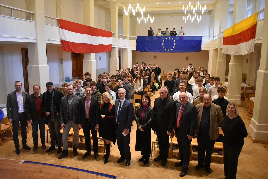 Im Zuge der EU-Zukunftsgespräche fand am Freitag, den 6. Dezember 2024, ein Dialog zum Thema „Europäische Werte gestern und heute: ein Blick in die EU-Charta der Grundrechte“ am Stiftsgymnasium St. Paul statt. Für die Organisation vor Ort zeigten sich die EU-Seniorbotschafter der Schule, Mag. Christoph Brandstätter, Mag. Bernd Locker, Mag. Christian Taudes und Mag. Rosemarie Pollanz, verantwortlich.