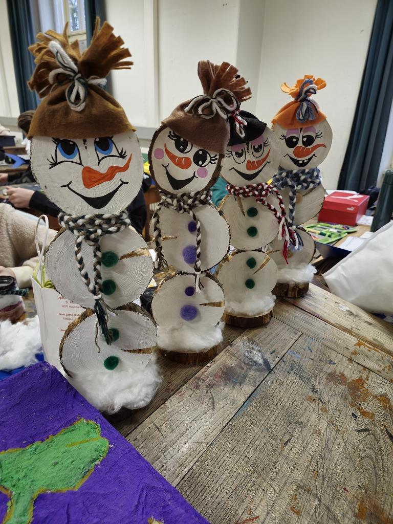 Den ganzen November lang arbeitete die 3a,b,c Klassen an tollen Weihnachtskarten, Holzschneemännern und Kerzengläsern. Ganz unter dem Motto "Upcycling" brachten die Schüler:innen von zuhause Holzscheiben, Wollreste und alte Schraubgläser mit und zauberten daraus im KUG-Unterricht wunderschöne Dekostücke.