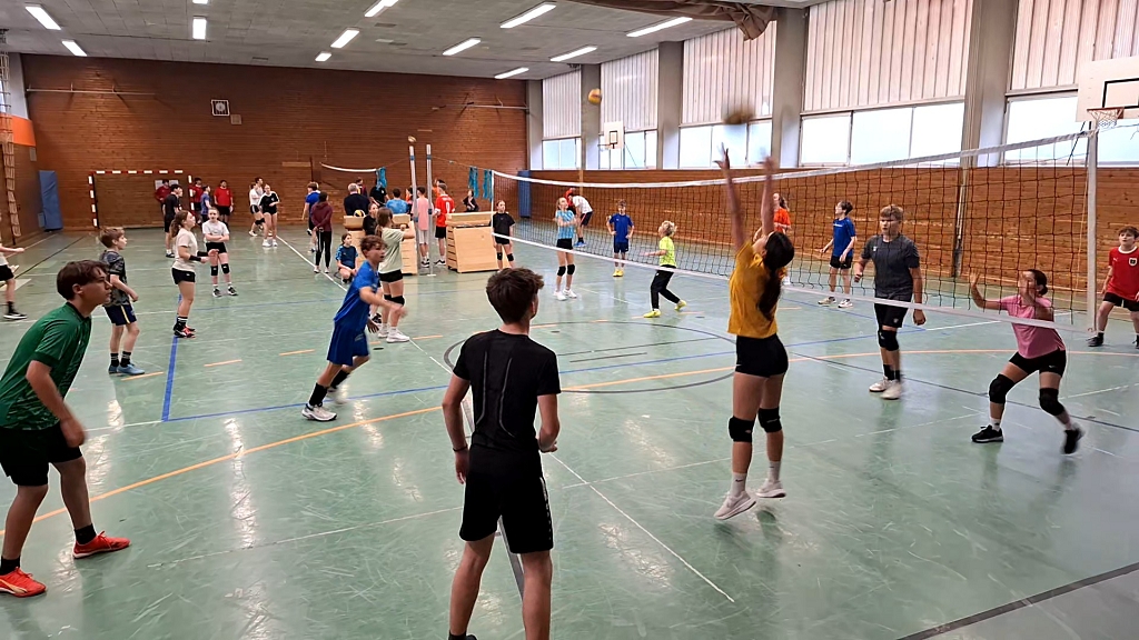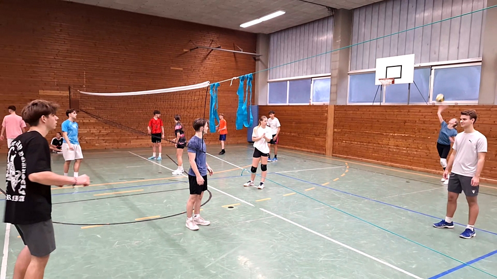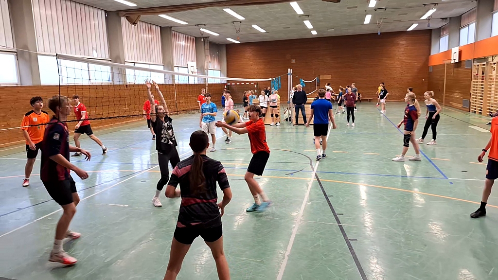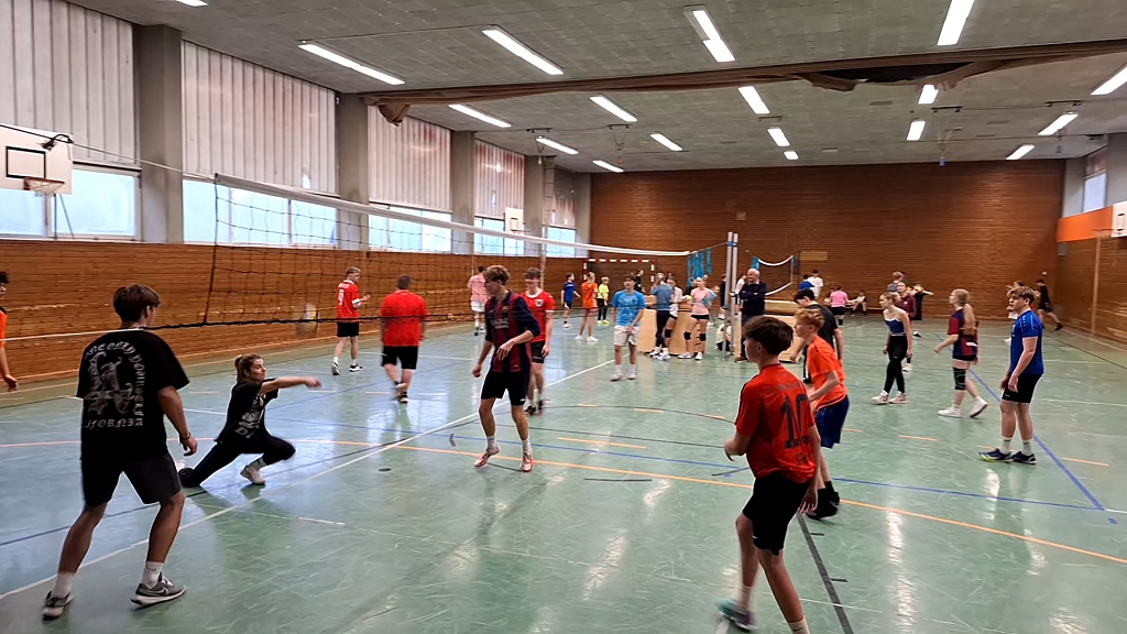 Schülerinnen und Schüler verschiedener Jahrgangsstufen bildeten gemischte Teams, um sich in spannenden Spielen zu messen. Insgesamt spielten 5 Unterstufen- und 5 Oberstufenmannschaften im Round - Robin - Modus gegeneinander, so dass jede Mannschaft gegen jede spielte. Die Spiele waren zum Teil sehr spannend, hart umkämpft, aber immer sehr fair. Besonders erfreulich war, dass vier Mannschaften mehr als im Vorjahr teilnahmen.