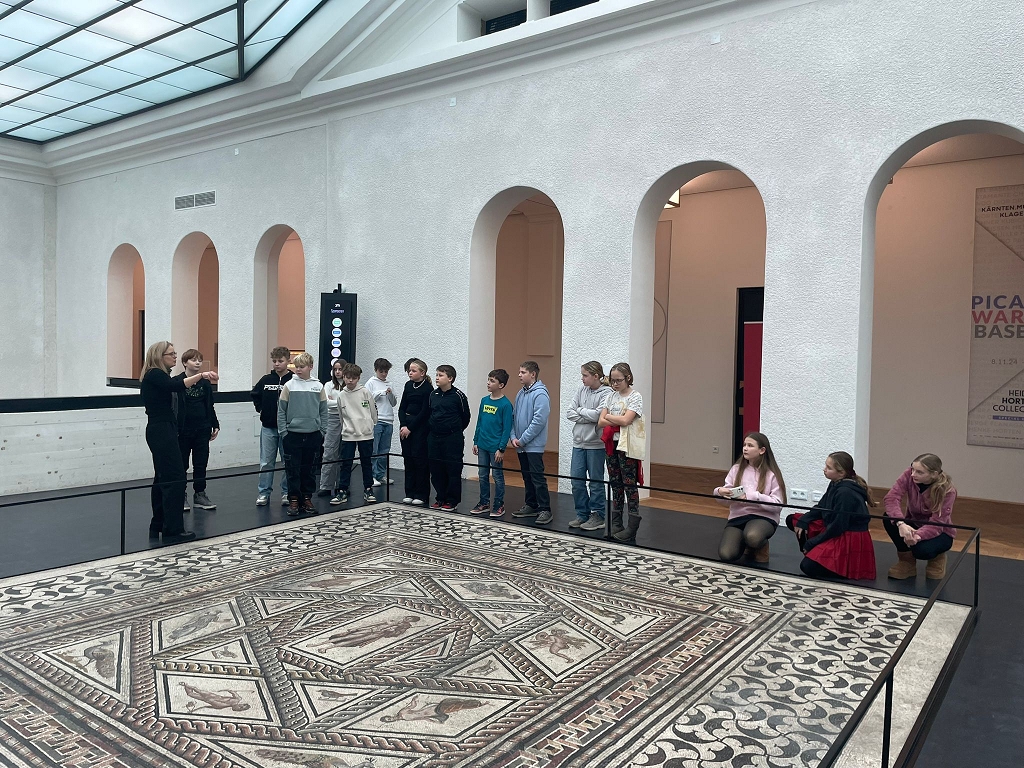 Das neue Kärntner Universalmuseum, das den Wandel der Lebensräume und der Kulturen als Leitfaden für die Erzählungen wählt, bot den Schüler:innen einen spannenden Überblick über die Geschichte unseres Bundeslandes. Der „Lindwurmschädel“, das Dionysos-Mosaik, das Großglockner-Relief, das Siebenhirter-Schwert, die frühesten Spuren menschlicher Besiedelung und vieles mehr machten den Museumsbesuch zu einem unvergesslichen Erlebnis.