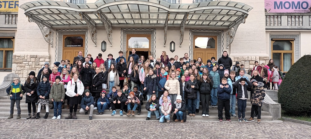 Kulturelles Highlight war sicherlich der Besuch des Stadttheaters. Die Bühnenfassung des weltbekannten Kinderbuchklassikers „Momo oder: Die seltsame Geschichte von den Zeit-Dieben und von dem Kind, das den Menschen die gestohlene Zeit zurückbrachte“ begeisterte alle Schüler:innen der 2. Klassen und brachte den einen oder anderen durch die eindringlichen Botschaften zum Nachdenken.
