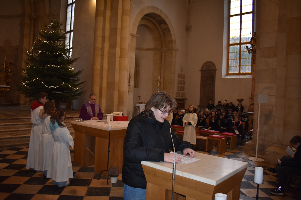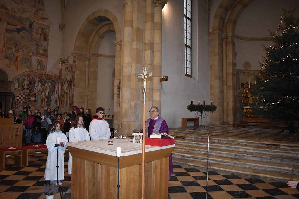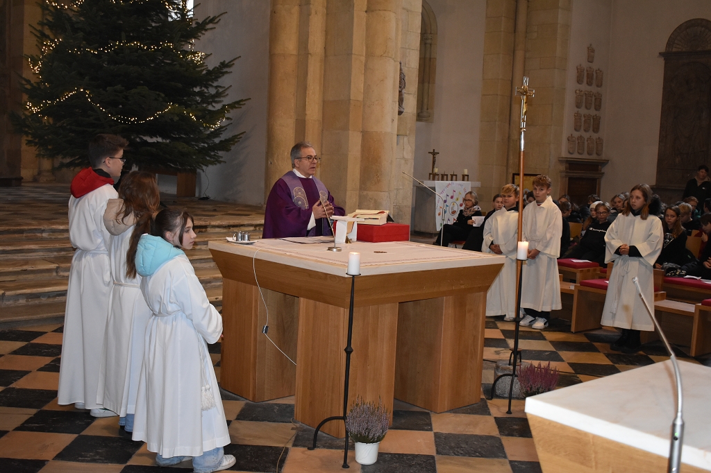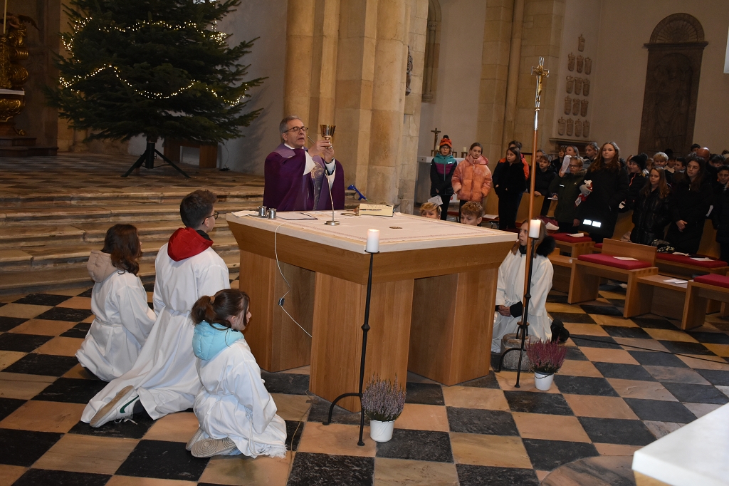 Es ist immer wieder eine große Freude für alle Schülerinnen und Schüler sowie für das Kollegium, in den Weihnachtsferien zu sein. Und noch mehr Freude macht uns die gemeinsame Weihnachtsmesse der Schule mit unserem Priester des Stifts, Pater Gerfried Sitar. Wir danken ihm von Herzen für die gemeinsame Feier und dafür, dass er sich beim Schauspiel der Theatergruppe, einer "inneren Herbergsuche", die sich der Frage widmete, wo man denn Jesu heute findet, für die priesterliche Sprechrolle anbot und gemeinsam mit den Schülerinnen und Schülern der Gruppe der gesamten Schule lebendig erklärte, was es heißt, Jesu im eigenen Leben zu suchen und zu finden. Er erklärte der versammelten Schulgemeinschaft, was es im Leben zu erkennen gilt, welche Sichtweise, welche "Lebensbrille" man braucht, um bei dieser Suche erfolgreich zu sein, und welche Bedeutung Weihnachten hat.