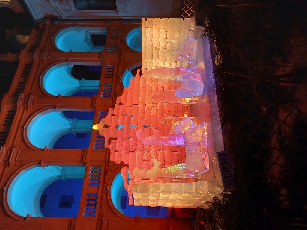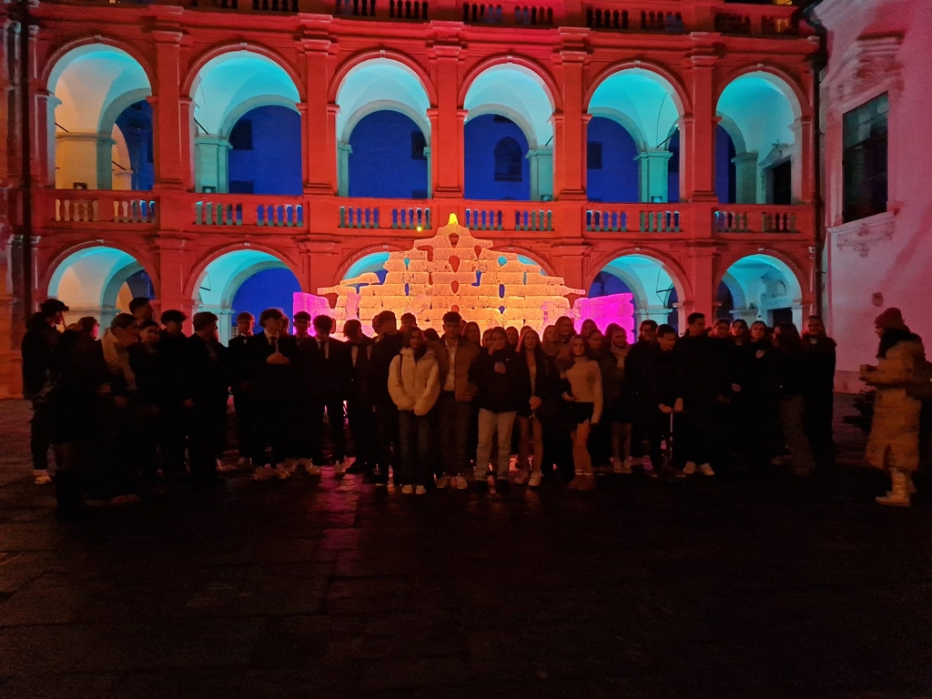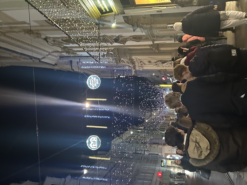 Bevor sie sich zum Schauspielhaus begaben, legten sie einen kleinen Zwischenstopp bei der berühmten Eiskrippe, die im Grazer Landhaushof ausgestellt ist, ein. Die kunstvoll gestalteten Figuren aus glitzerndem Eis zogen die Schüler:innen sofort in ihren Bann. Die beeindruckende und detailgetreue Arbeit sowie die stimmungsvolle Beleuchtung sorgten für eine einzigartige Atmosphäre und einen großartigen Start in den Abend.
