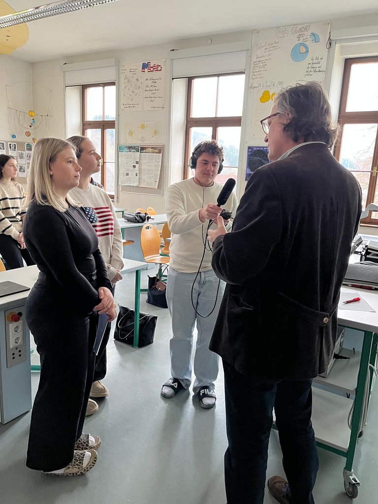 Neben professionellen Interviews mit Dipl.-Ing. Anna-Sophie Pirtscher, Leiterin der Forstlichen Ausbildungsstätte Ossiach des Bundesforschungszentrums für Wald (BFW), und Dipl.-Ing. Dominik Habsburg-Lothringen führten die Schüler:innen auch eine spannende Straßenbefragung durch. Passantinnen wurden nach ihrer Meinung zu klimafitten Wäldern und der Bedeutung von Artenvielfalt befragt. Diese persönlichen Perspektiven gaben dem Projekt eine weitere, lebendige Dimension und zeigten, wie wichtig das Thema für die Gesellschaft ist.