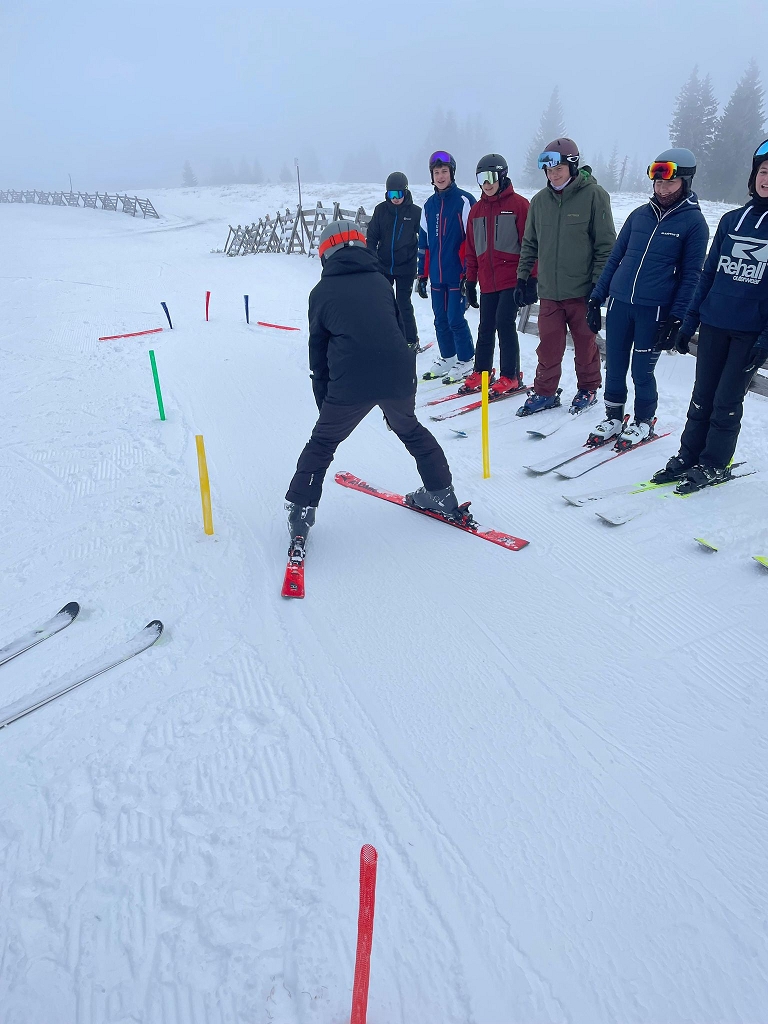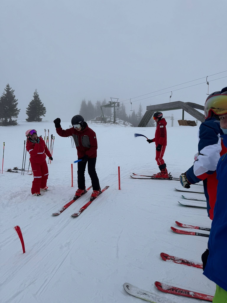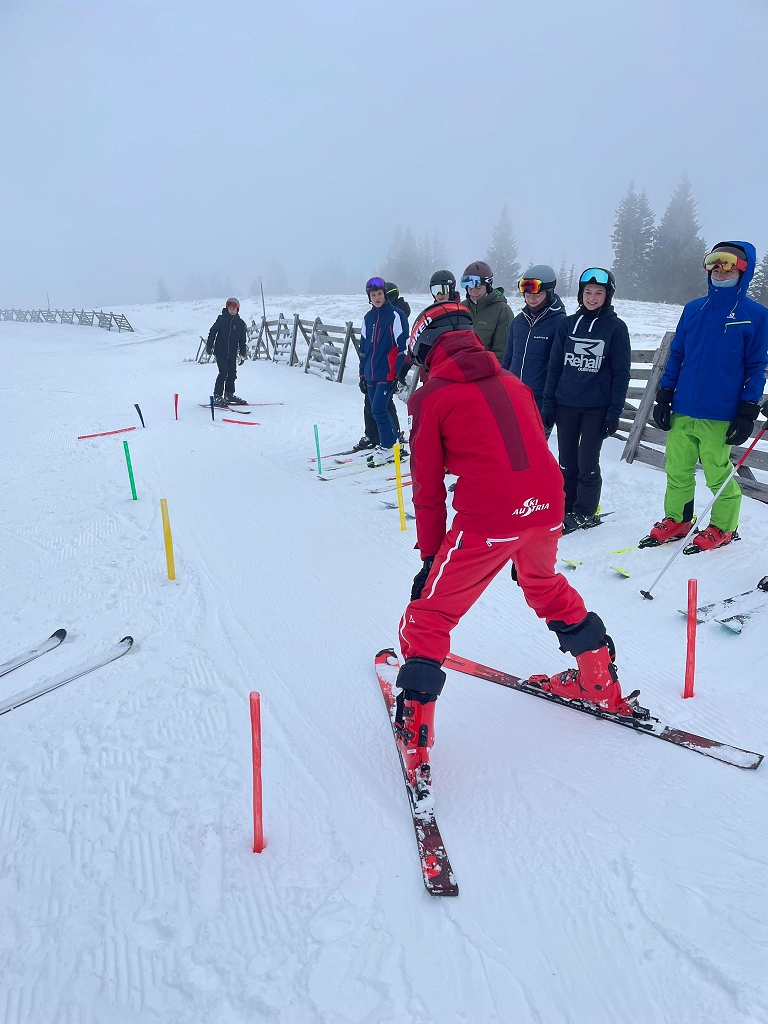 Jeden Samstag und Sonntag haben wir bei jedem Winterwetter – von strahlendem Sonnenschein bis hin zu leichtem Schneefall – auf den Pisten trainiert. Vormittags, von 9 bis 13 Uhr, stand Praxis auf dem Programm: Skidrehen, Skisteuern und die Verbesserung unseres Eigenkönnens. Nachmittags ging es in die Theorie. Wir lernten alles über Bewegungslehre, Sicherheit, Erste Hilfe und Unterrichtsmethoden – immer mit dem Ziel, nicht nur die theoretische und die praktische Prüfung zu bestehen, sondern die besten Skilehrer zu werden.