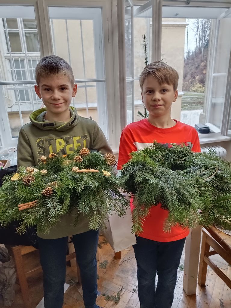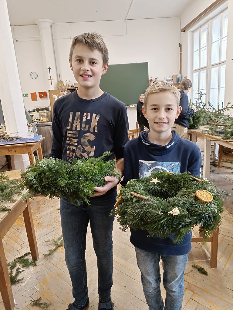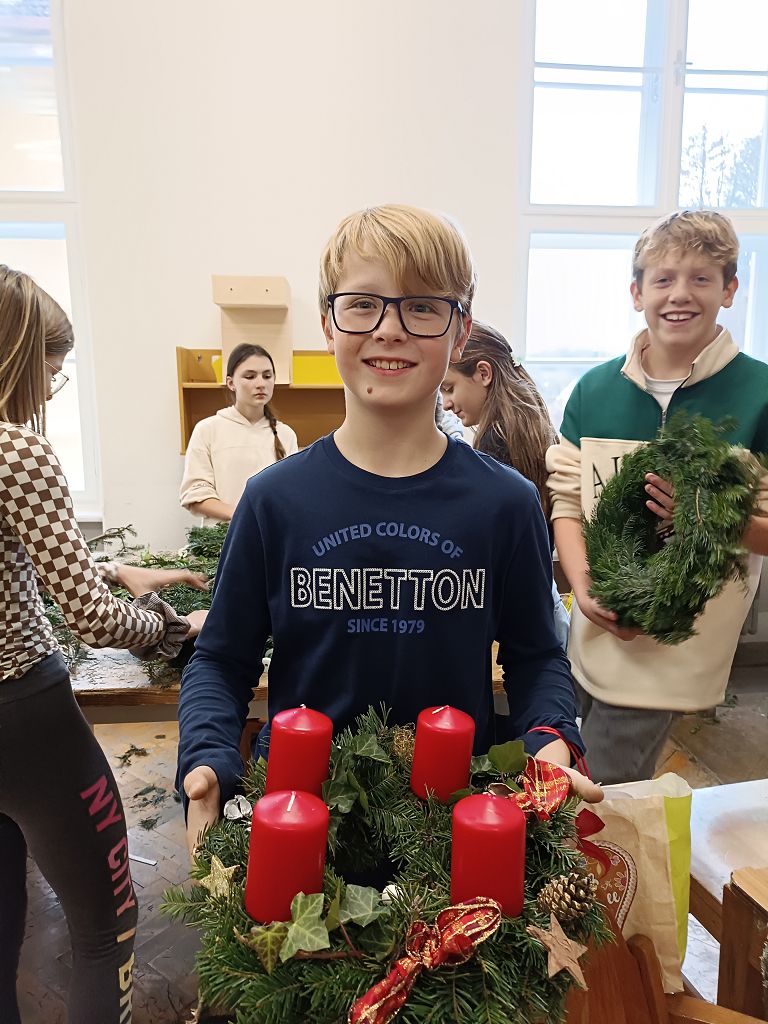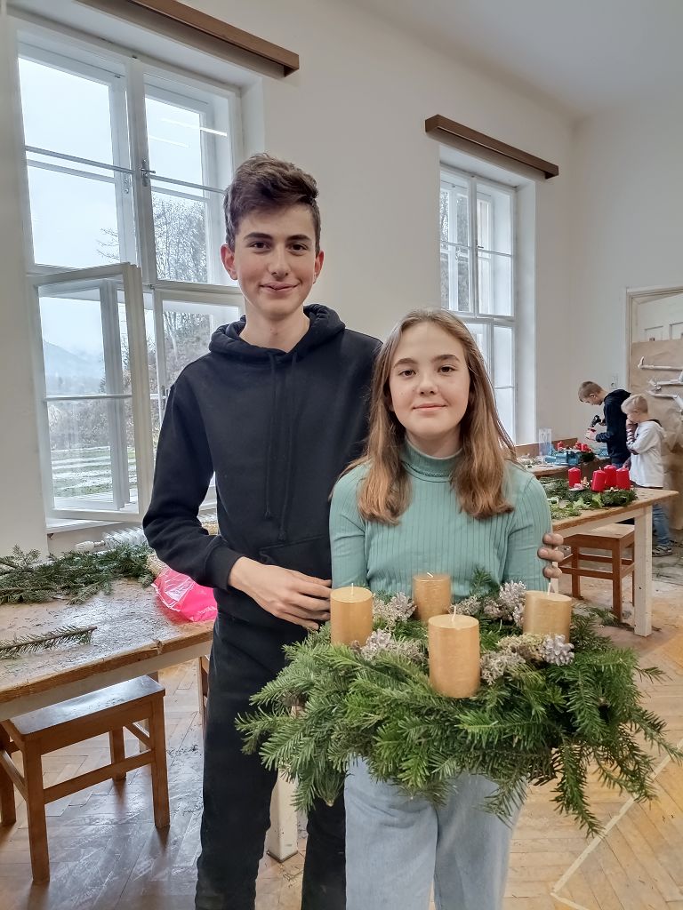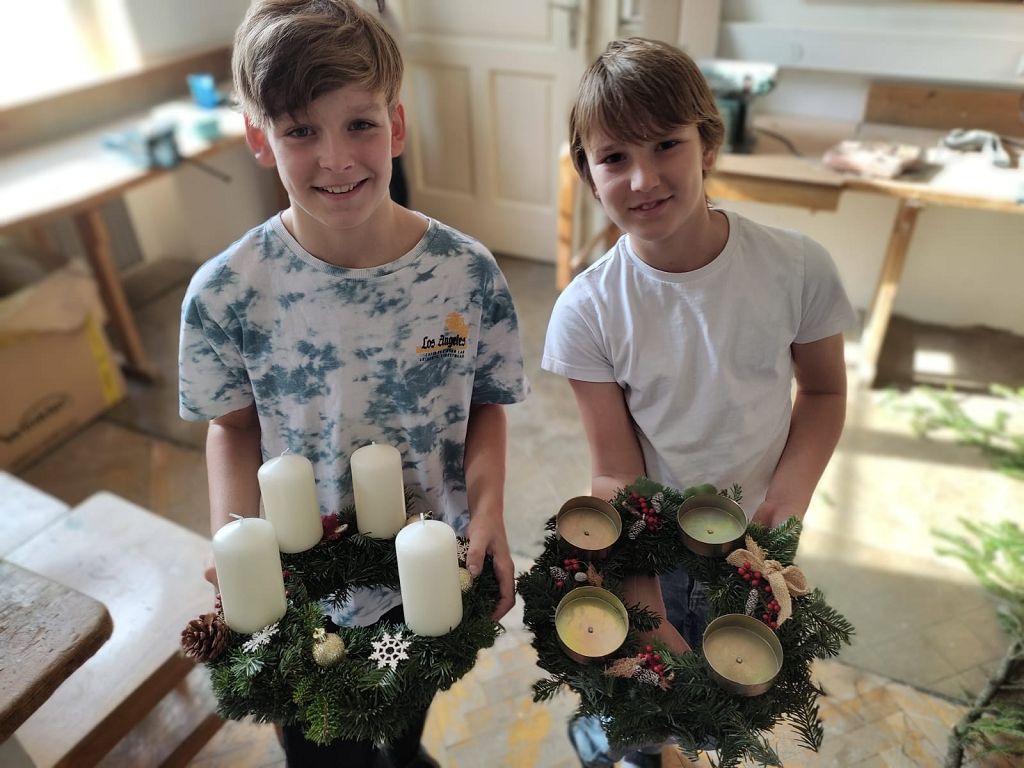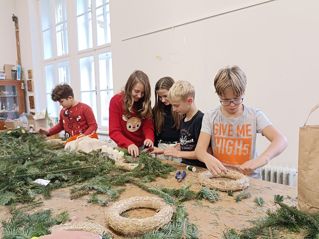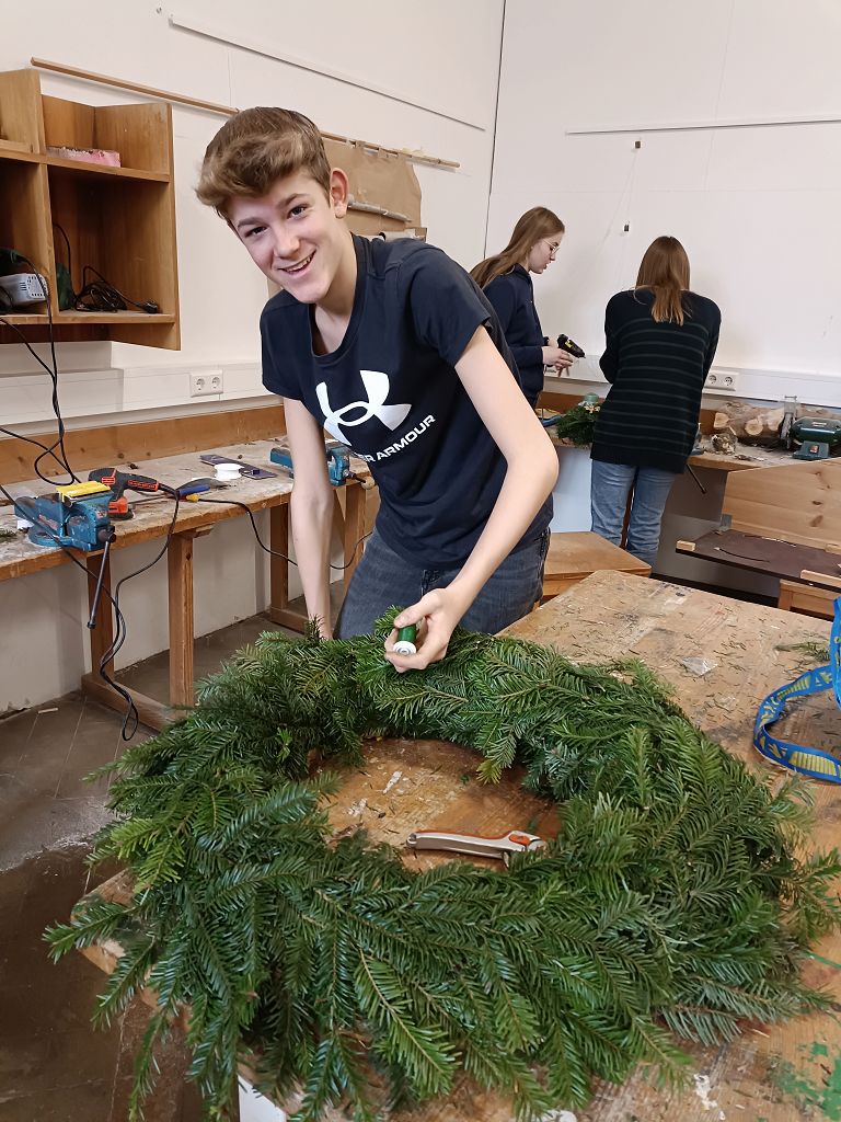 Dieses Jahr war es im Gegensatz zu den beiden letzten Jahren, die coronabedingt anders verliefen, wieder möglich, Adventkränze in der Schule zu binden.