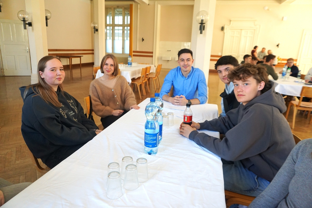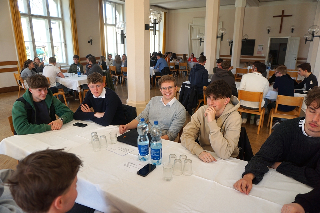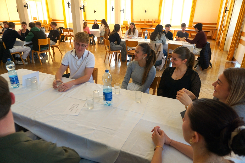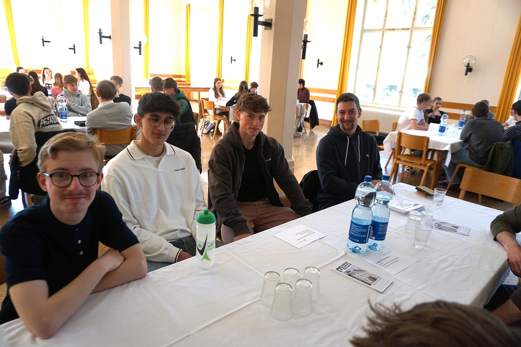 So kamen am 11. April 2025, dem letzten Tag vor den Osterferien, gleich 13 aktive Student:innen und drei Alumni im Speisesaal des Konviktes zusammen, um den Schüler:innen der 7. Klassen über ihre Studien Rede und Antwort zu stehen. Die beiden Schülerberater Monika Veidl und Günter Peter haben sich im Vorfeld bemüht, ein möglichst breit gefächertes Spektrum an Studienmöglichkeiten unter den Absolvent:innen der letzten Jahre zusammenzustellen.