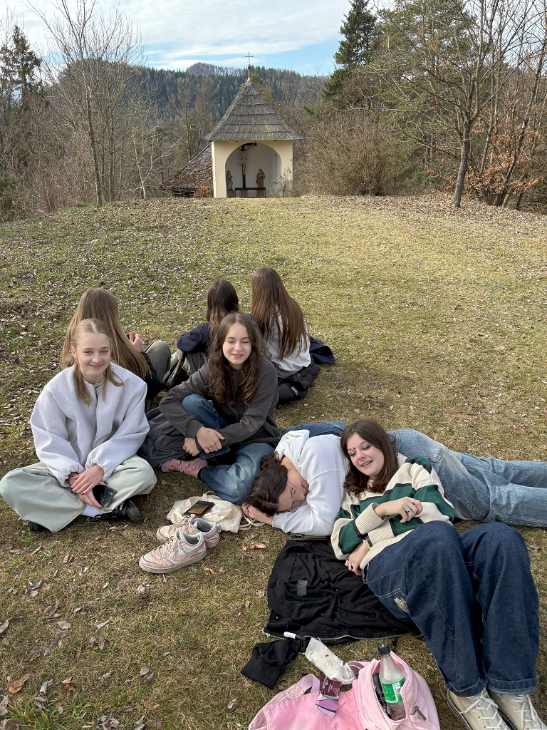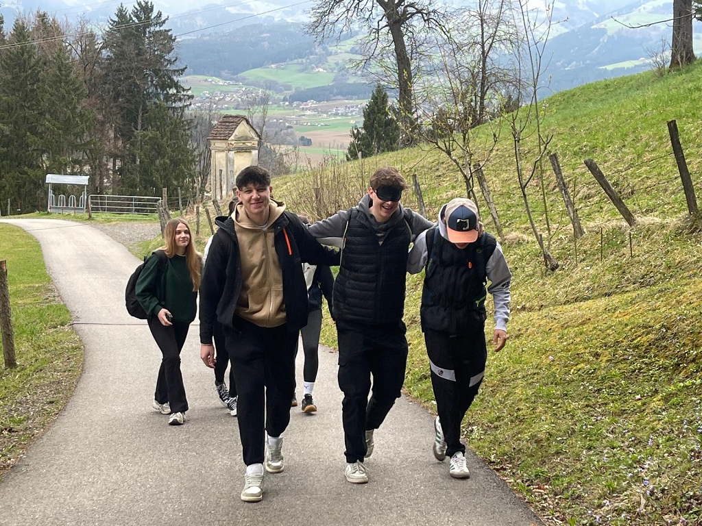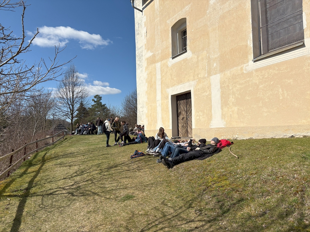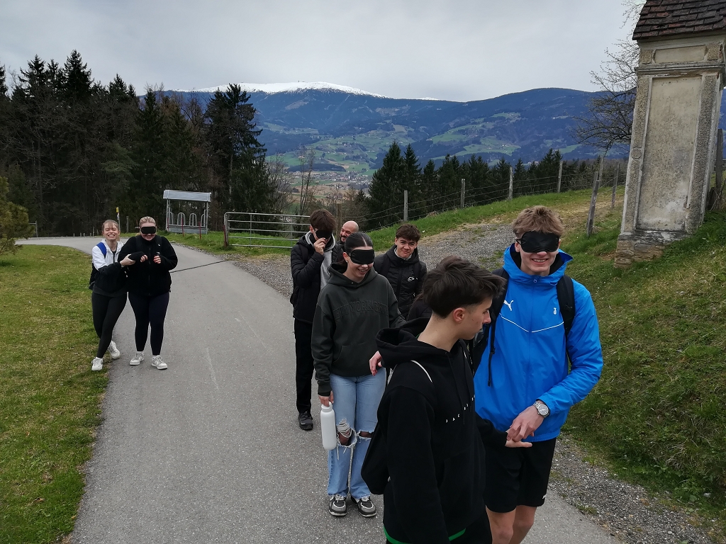 Mit den Schülerinnen und Schülern der Oberstufe hingegen machten sich die Klassen, begleitet von ihren Religionslehrern und Klassenvorständen und dem St. Pauler Diakon Jakob Marinus Mokoru, BEd auf, ihren eigenen, zur Josefskapelle gewandten, Pilgerweg der Hoffnung zu gehen. Begleitet durch einige spirituelle Inputs am Weg, rief er den Schülerinnen und Schülern auf vielfältige Weise Eigenheiten des Lebens und des Glaubens in Herz. Wege allein zu gehen, aber auch gemeinsam, schweigsam zu sein, aber auch anderen zu danken, manch einen Weg blind und auf andere angewiesen zu gehen, aber auch, was es heißt andere zu leiten… und vor allem, immer von Gott angenommen und geleitet zu sein, was jeweils bei einer gemeinsamen Wort Gottes Feier in der Josefskapelle den Abschluss des Einkehrtages bot.