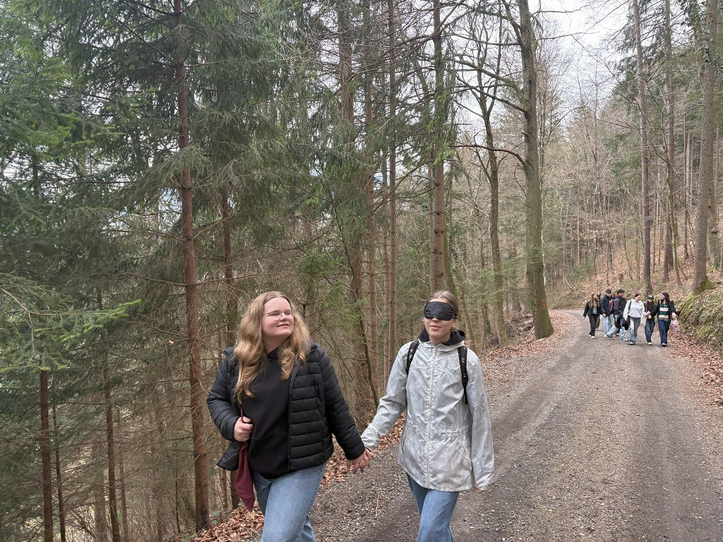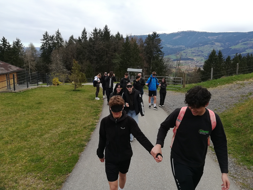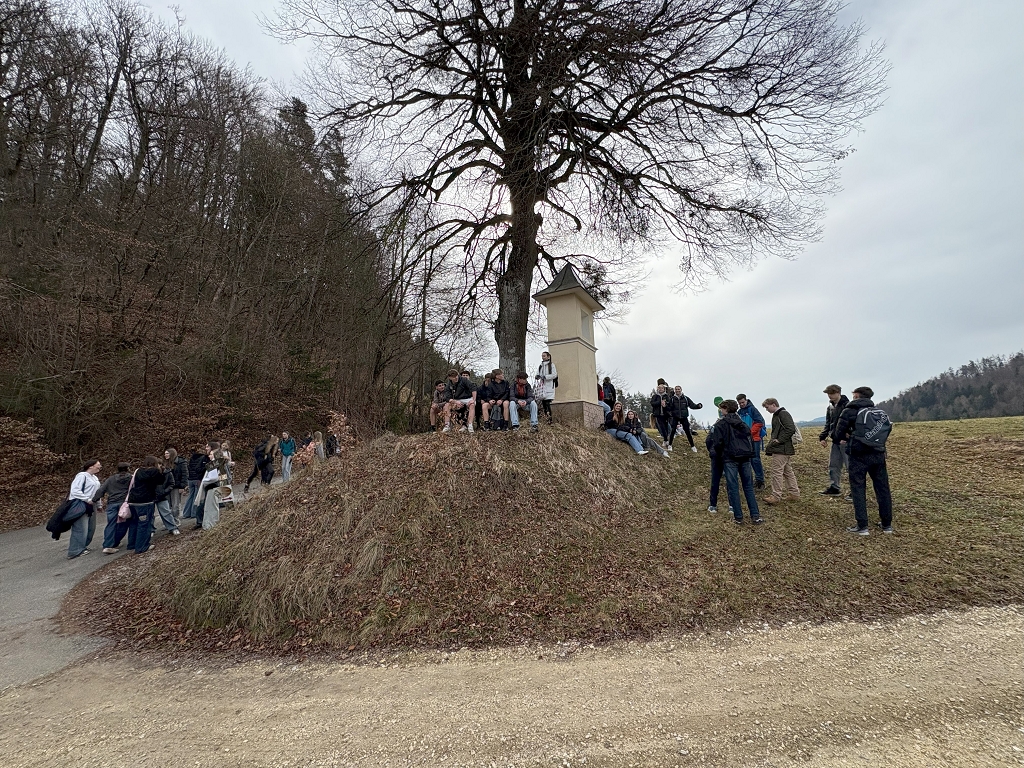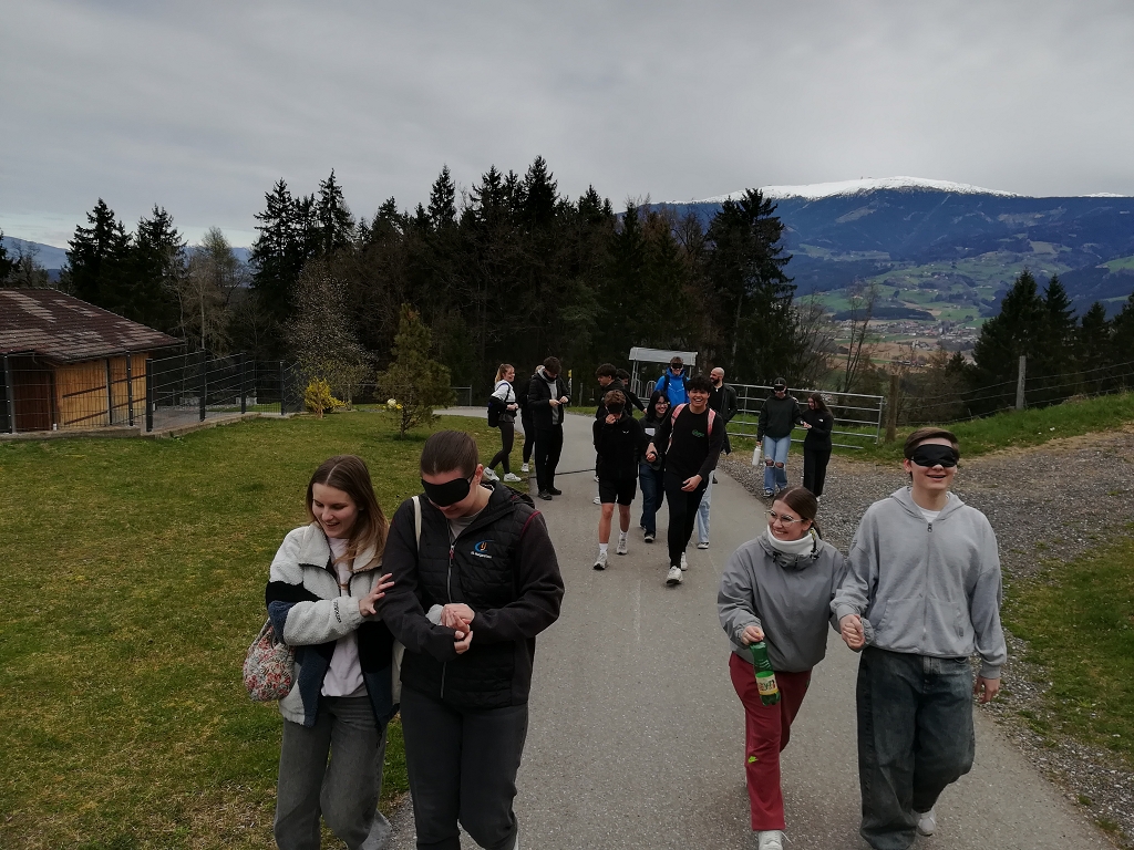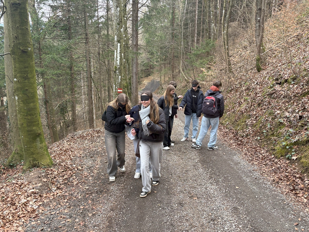 Mit den Schülerinnen und Schülern der Oberstufe hingegen machten sich die Klassen, begleitet von ihren Religionslehrern und Klassenvorständen und dem St. Pauler Diakon Jakob Marinus Mokoru, BEd auf, ihren eigenen, zur Josefskapelle gewandten, Pilgerweg der Hoffnung zu gehen. Begleitet durch einige spirituelle Inputs am Weg, rief er den Schülerinnen und Schülern auf vielfältige Weise Eigenheiten des Lebens und des Glaubens in Herz. Wege allein zu gehen, aber auch gemeinsam, schweigsam zu sein, aber auch anderen zu danken, manch einen Weg blind und auf andere angewiesen zu gehen, aber auch, was es heißt andere zu leiten… und vor allem, immer von Gott angenommen und geleitet zu sein, was jeweils bei einer gemeinsamen Wort Gottes Feier in der Josefskapelle den Abschluss des Einkehrtages bot.