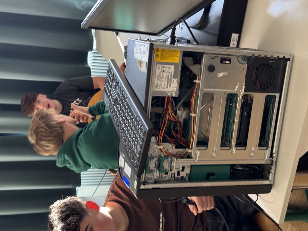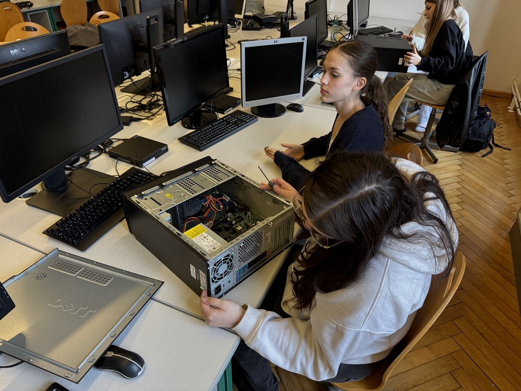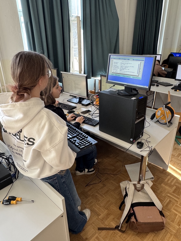 Aus diesem Grund haben sich die Schülerinnen und Schüler der 5. Klassen im Informatikunterricht bei Frau Prof. Hermine Bürger und Herrn Prof. Siegfried Wernig intensiv mit dem Aufbau und der Wartung von Computern beschäftigt. Über mehrere Wochen hinweg lernten sie, Computer fachgerecht zu zerlegen, das Innenleben zu reinigen und die Komponenten wieder korrekt zusammenzusetzen. Dabei wurden potenzielle Fehlerquellen erkannt, auftretende Probleme analysiert und mithilfe von Internetrecherche eigenständig Lösungen gefunden – bis hin zum erfolgreichen Start des Betriebssystems.