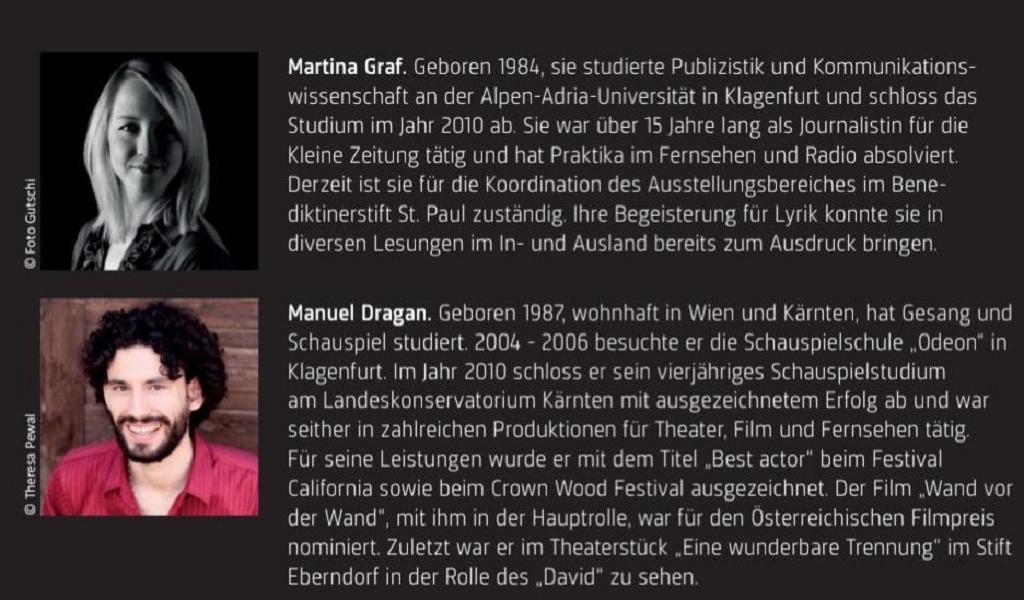 Einen Auszug aus diesem tragischen Briefwechsel, der nicht nur von künstlerischer Tiefe, sondern auch von einer besonderen persönlichen Verbindung geprägt ist, wurde am Stiftsgymnasium St. Paul von Mag. Martina Graf, Mitglied im Vorstand der Christine Lavant Gesellschaft, in der Rolle der Christine Lavant, und vom Schauspieler Manuel Dragan, der den Maler Werner Berg zum Leben erweckt, lebendig vorgetragen.