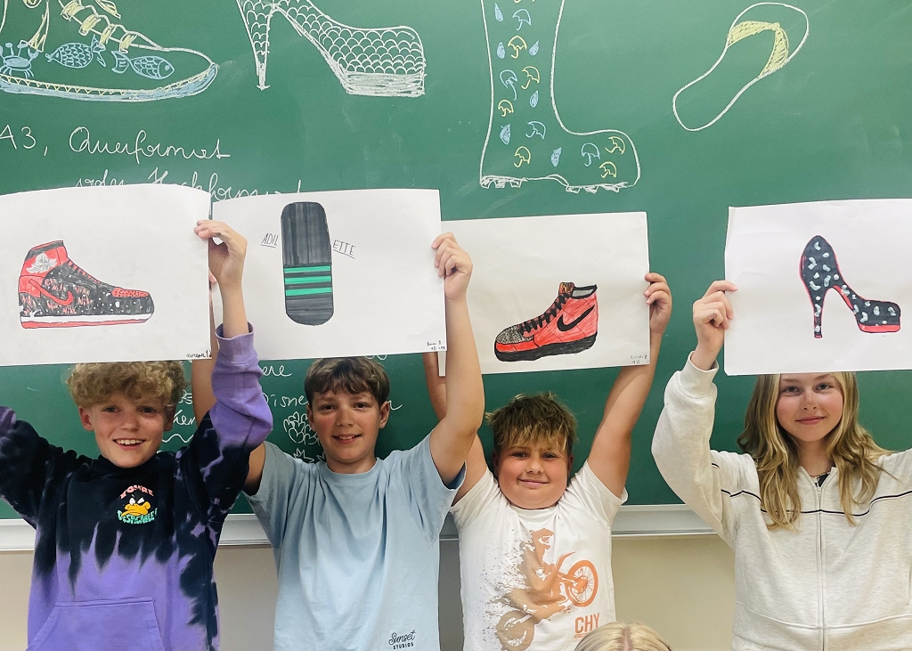 Die Schüler:innen der ersten Klassen kreierten ihre Traumschuhe.