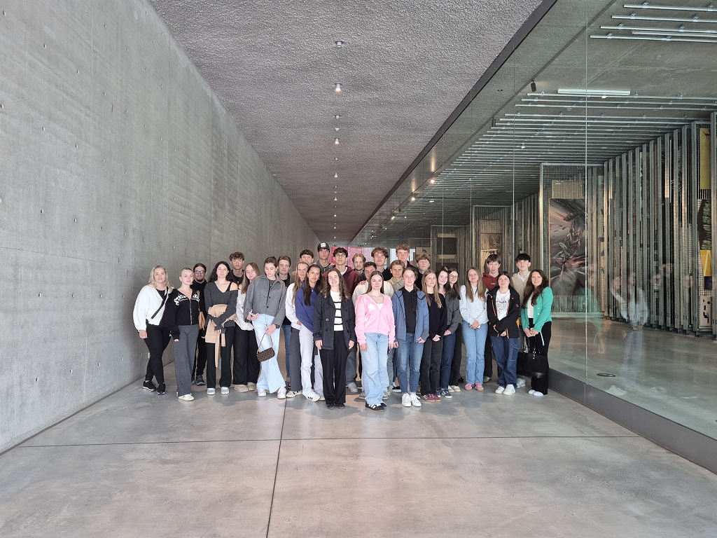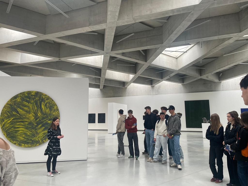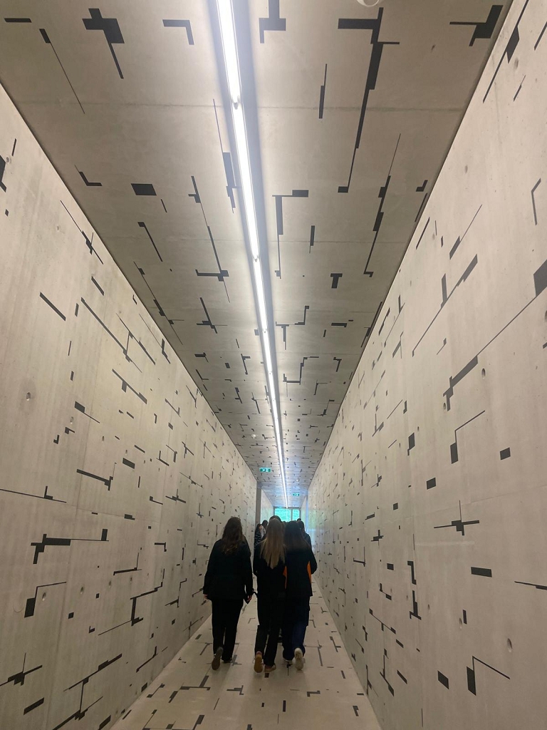Unser Besuch im Museum begann eindrucksvoll – schon das Gebäude selbst, halb in den Hügel eingelassen, war ein erstes Highlight. Gemeinsam mit unserer Museumsführerin betraten wir durch einen langen Tunnel die Welt der Kunst, ein symbolischer Übergang, wie sie uns erklärte.