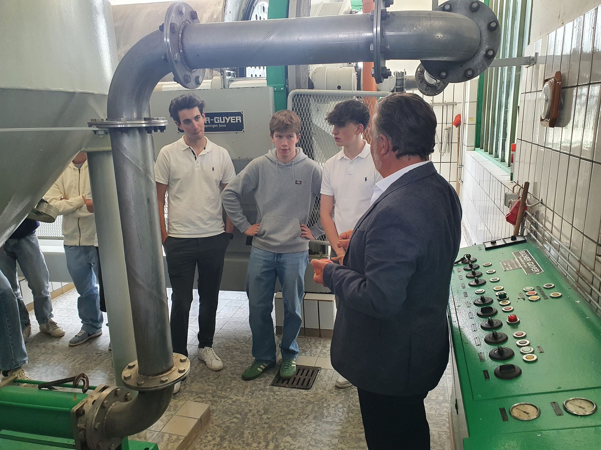 Im Anschluss erhielten wir einen Einblick in die einzelnen Produktionsschritte – von der frischen Frucht bis zum fertigen Getränk. Besonders spannend war es zu sehen, wie beispielsweise Äpfel zunächst zerkleinert und weiterverarbeitet werden, um später als Apfelsaft in Flaschen abgefüllt zu werden.