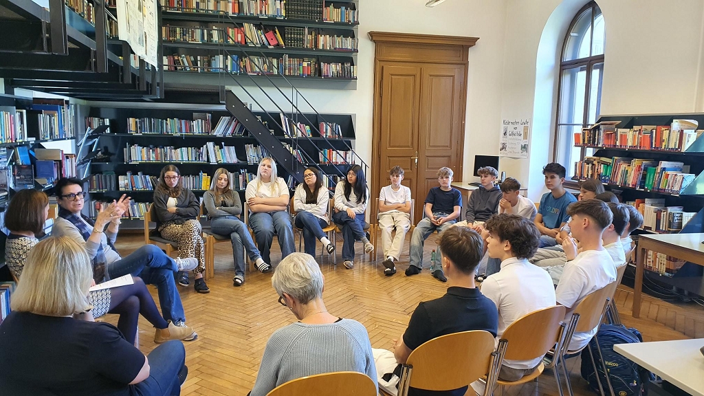 Die Schülerinnen und Schüler nutzten diese einmalige Chance mit zahlreichen Fragen nicht nur zur Familiengeschichte von Frau Segal, sondern auch zu ihren Erfahrungen mit Antisemitismus und Rassismus nach 1945.