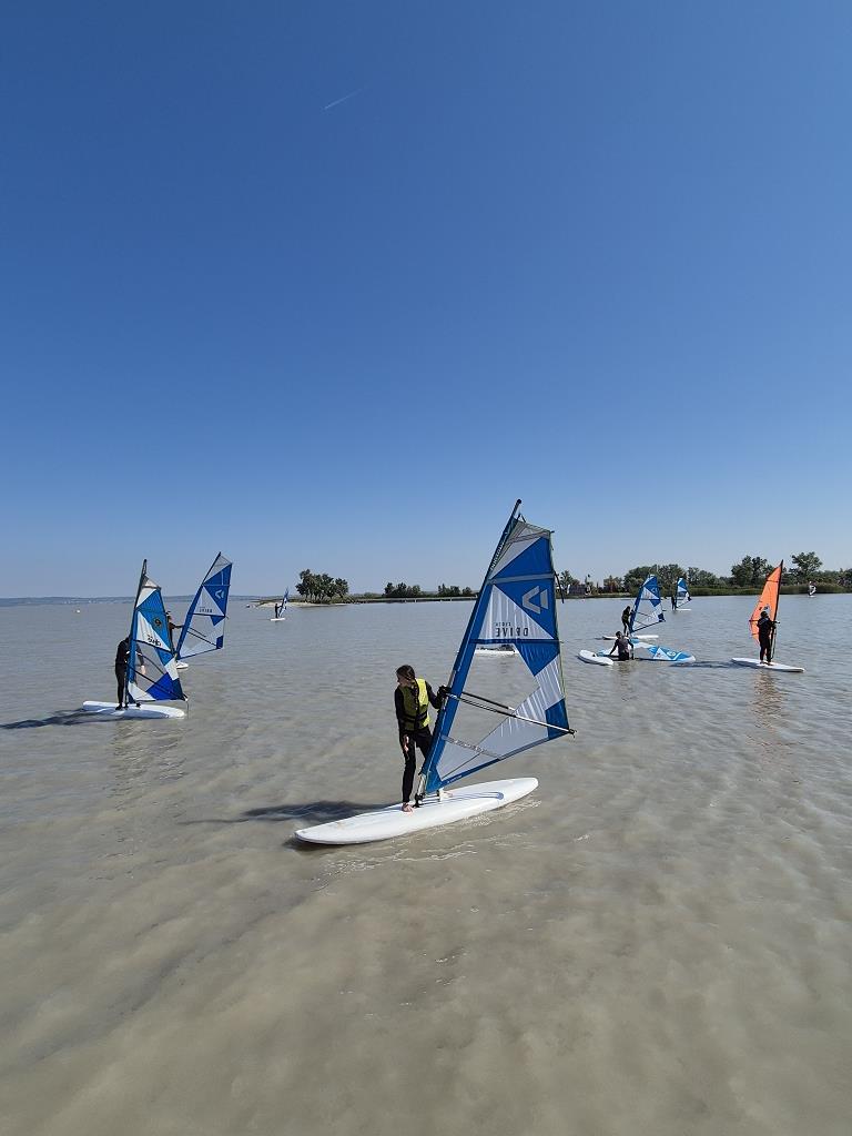 Das Hauptaugenmerk lag aber beim Segeln und Surfen. Die Schüler:innen erlernten die Grundlagen des Segelns und Surfens unter der Anleitung von erfahrenen Lehrern der Surf- bzw. Segelschule. Sie konnten ihre Fähigkeiten verbessern und am Ende der Woche selbstständig ihre Runden am Neusiedlersee drehen.